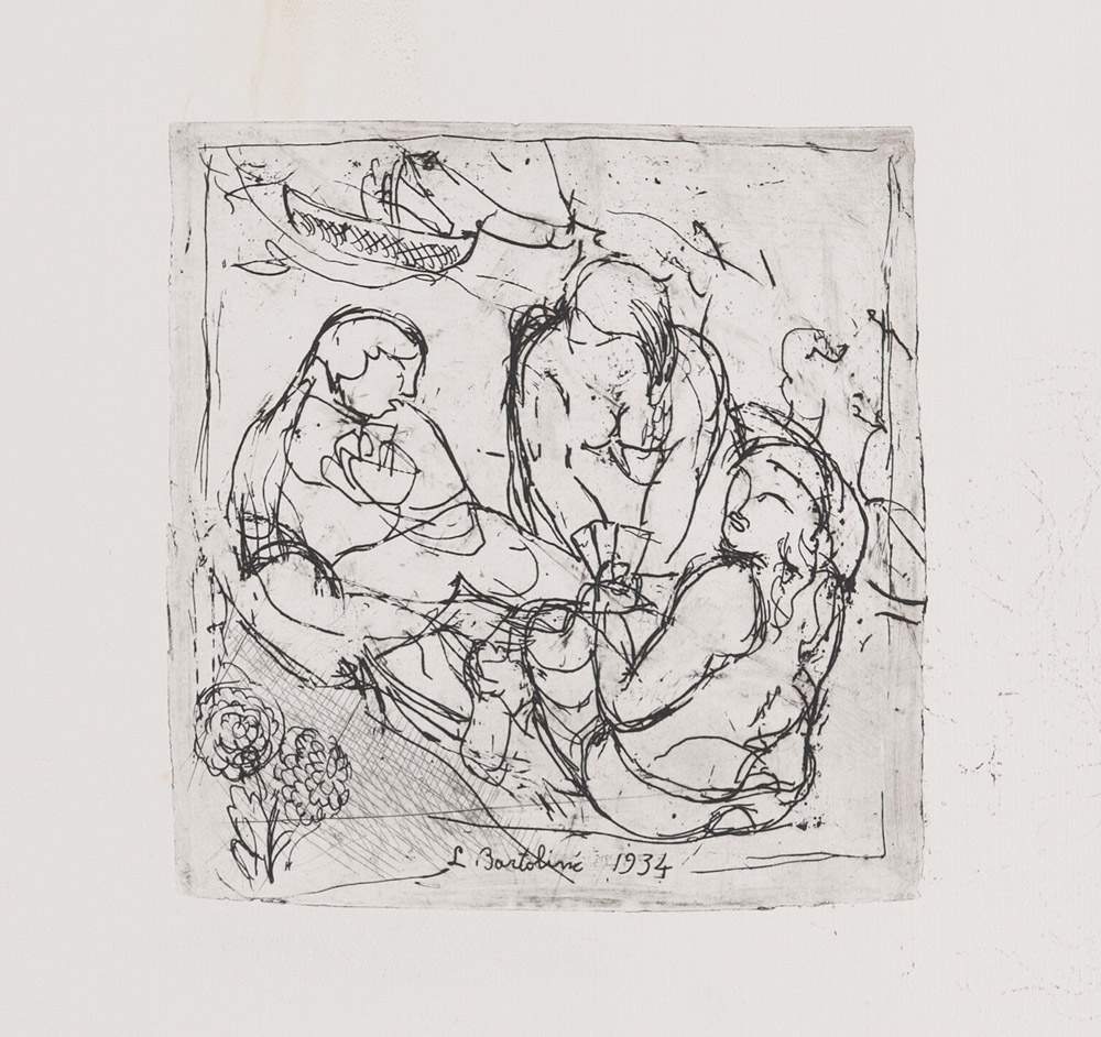 LUIGI BARTOLINI (Cupramontana 1892 - Roma 1963) Tre figure Incisione, ex. nd....