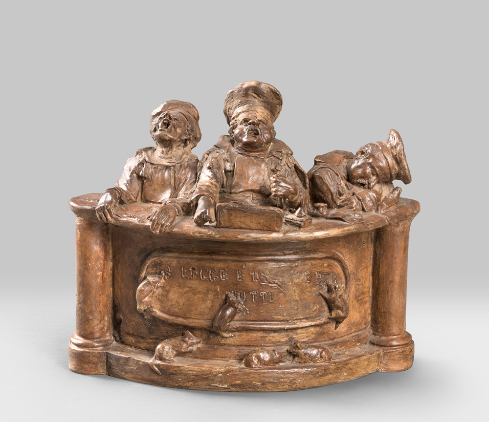 SCULTORE ITALIANO XX SECOLO Giudici in tribunale Scultura in terracotta, cm....