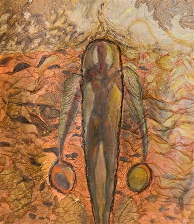 Bruno Ceccobelli (Montecastello Vibio (Pg) 1952) Entro nauta, Tecnica mista su tavola, cm. 45x40x4 Sul verso: sigla e titolo. Autentica dell'Artista su foto con Archivio n° BC 160 AA.