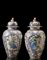 Coppia di vasi con coperchio in porcellana bianca e blu con dettagli...