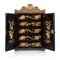 Mobiletto a due ante laccato in nero e oro con decorazioni floreali e di...