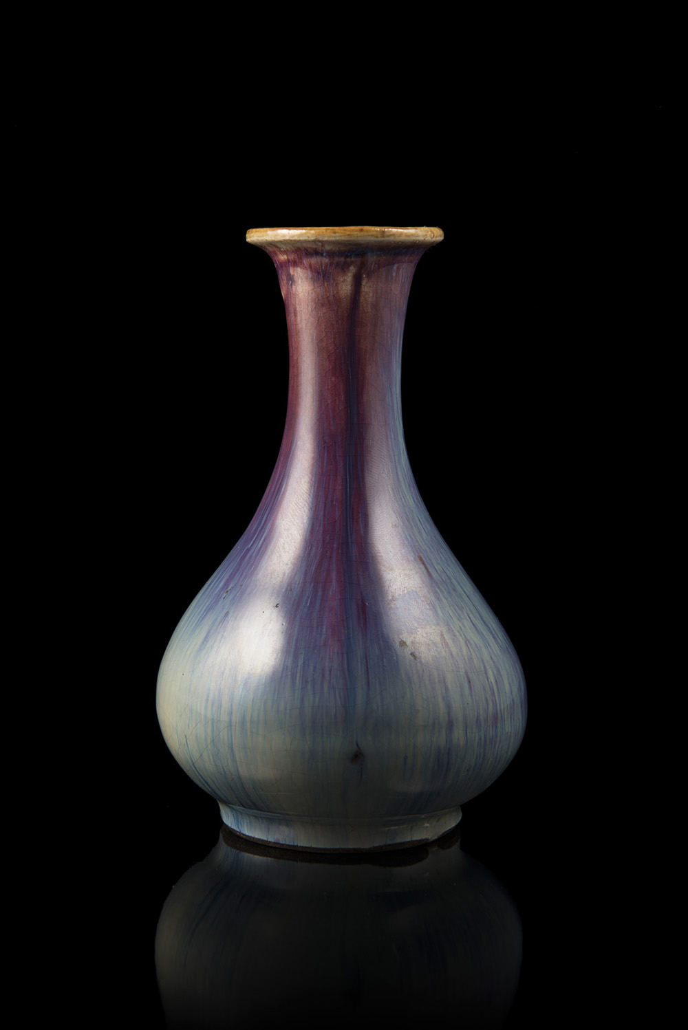 Piccolo vaso a bottiglia in porcellana a decoro flambË Cina, sec. XIX A small flambË-glazed bottle vase China, 19th century (h. 13 cm.)