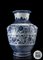 Vaso in porcellana bianca e blu con decorazioni di fiori di loto e bande...