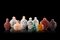 Dieci snuff bottle in porcellana, ambra, vetro e pietre dure, una con marchio apocrifo Qianlong alla base, con coperchi (difetti e mancanze) Cina, secc. XIX-XX Ten snuff bottles in various materials comprising porcelain, amber, glass and hardstone, one with apocryphal Qianlong mark to the base, with stoppers (losses and flaws) China, 19th-20th century (h. max 8 cm)