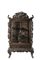 Grande mobile in legno riccamente intagliato con draghi e motivi floreali, líinterno con mensole asimmetriche, anta in vetro, con due cassetti (difetti e mancanze) Giappone, periodo Meiji (1868-1912) A large dark wood cabinet richly decorated with dragons and floral motifs, the interior with asymmetric shelves, glazed door and two drawers (losses) Japan, Meiji period (1868-1912) (212x120x53 cm.)
