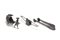 Tre oggetti di gusto orientale in argento: una pinza, un uomo con carretto e una portantina Three Asian silver items: a pair of tongs, a miniature carriage and a man with a cart (l. max. 14 cm.)