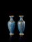 Coppia di vasi in metallo cloisonnË decorati con rami fioriti su fondo turchese con decoro geometrico (lievi difetti) Cina, sec. XIX A pair of cloisonne enamels vases decorated with flowers against a turquoise ground with geometric pattern (minor losses) China, 19th century (h. 30 cm.)