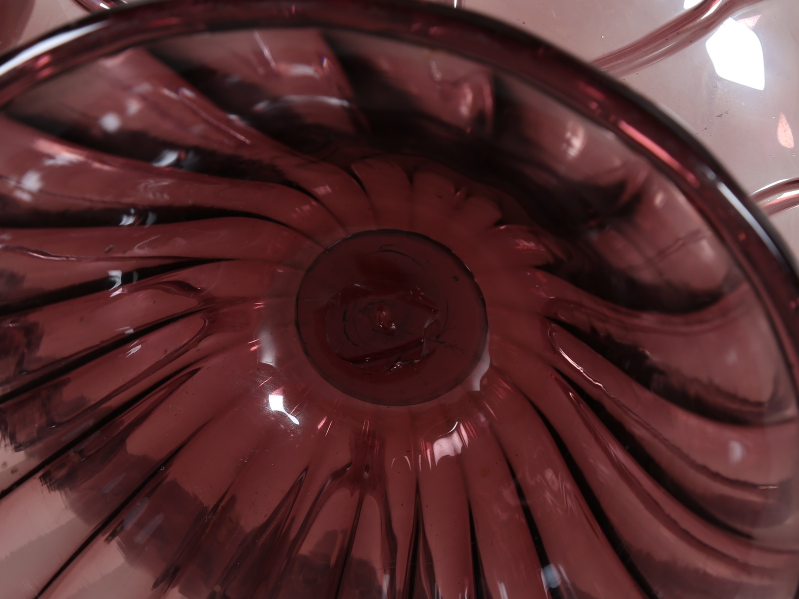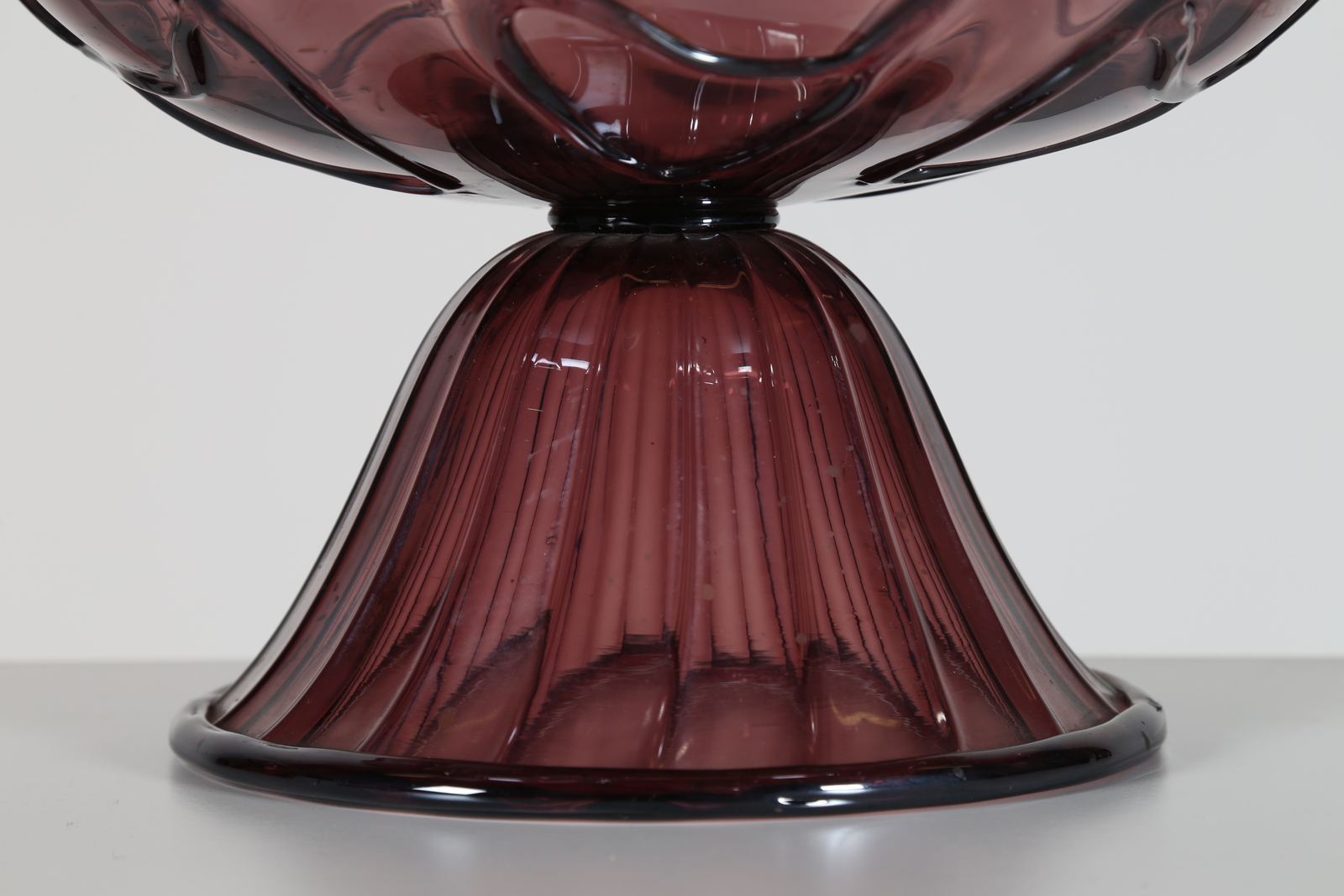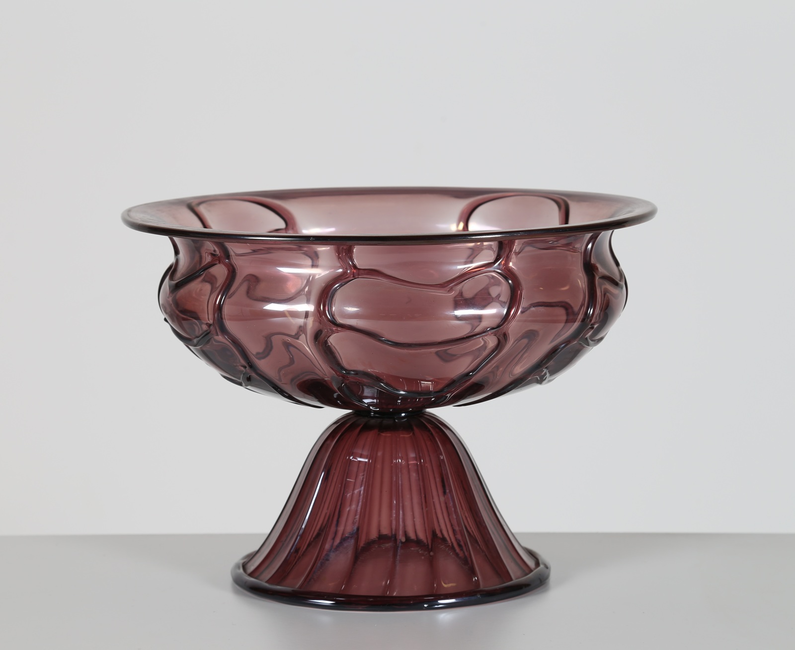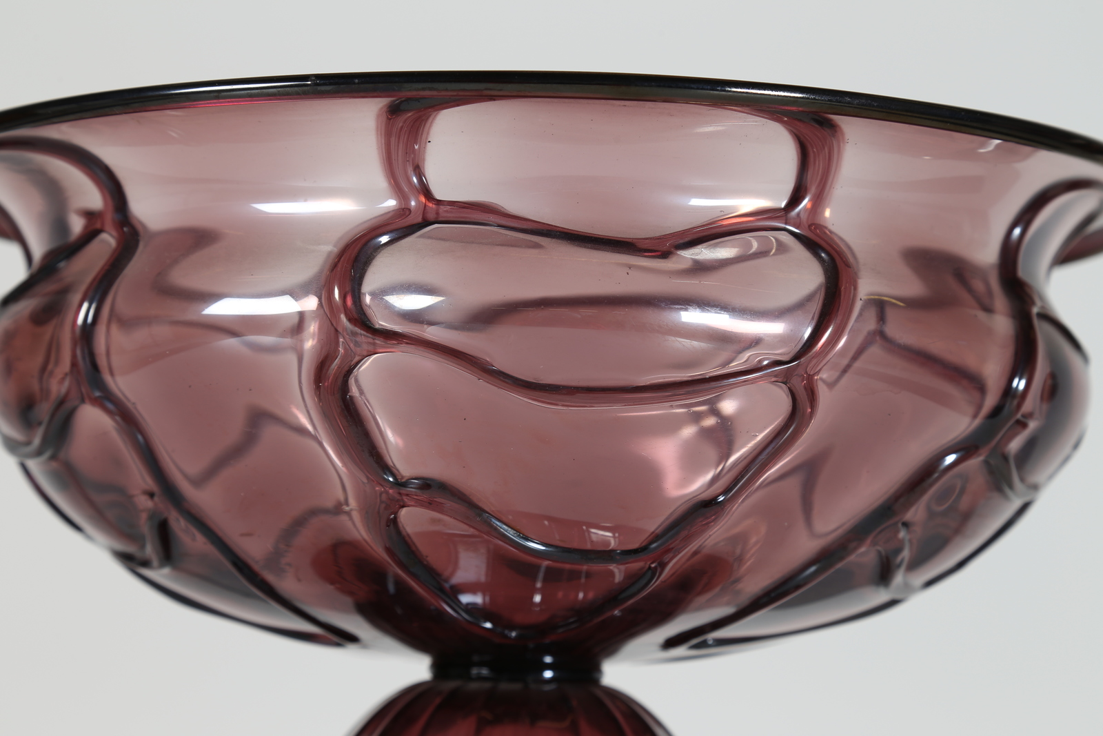 ZECCHIN VITTORIO (1878 - 1947) Grande alzata in vetro con applicazioni a caldo in ametista, per M.V.M. Cappellin, anni 30. -. Cm 33,00 x 23,50.