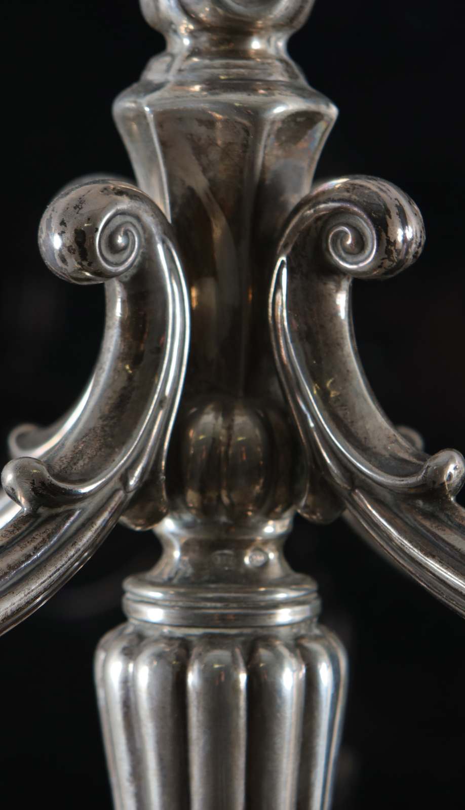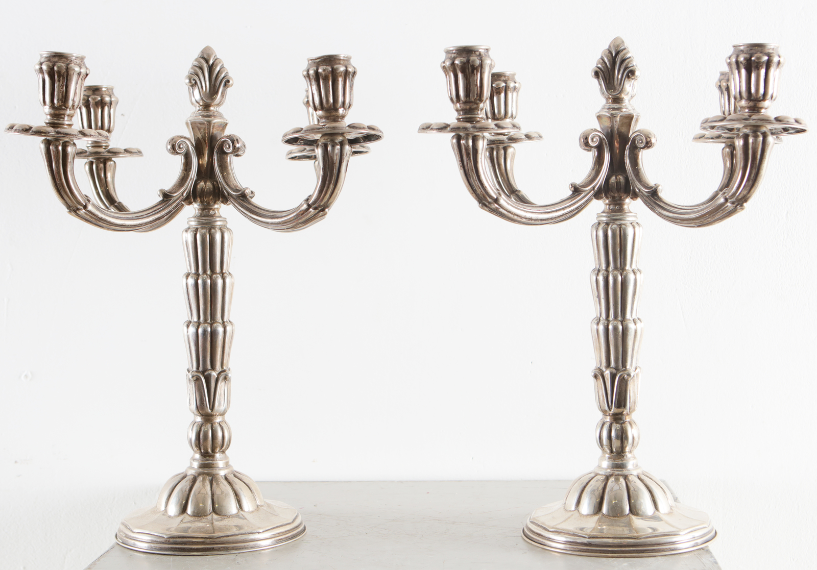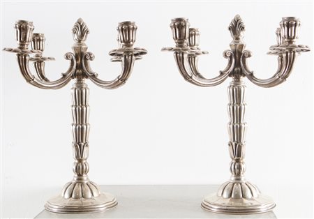 MANIFATTURA ITALIANA Candelabri in argento Art Déco, anni 30. . Cm 30,00 x 35,00 x 30,00.