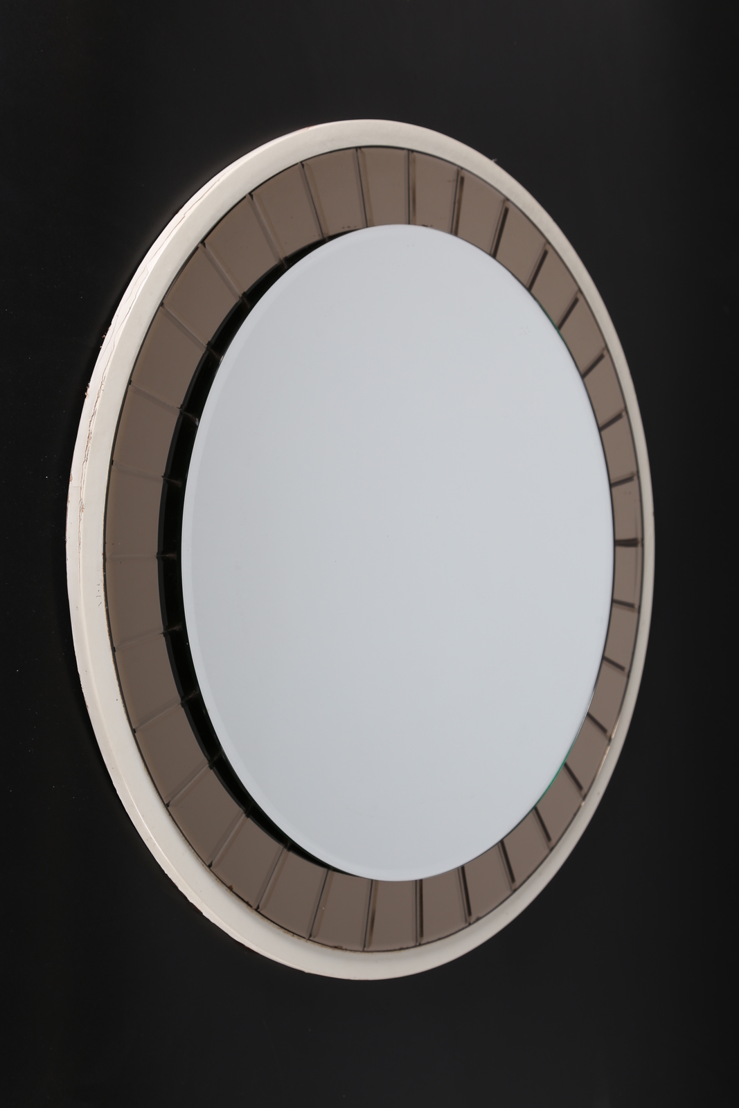 CRISTAL ART TORINO Specchio da parete con cornice in vetro inciso e molato, per Cristal Art Torino, anni 50 . . Cm 72,00 x 72,00 x 3,00.