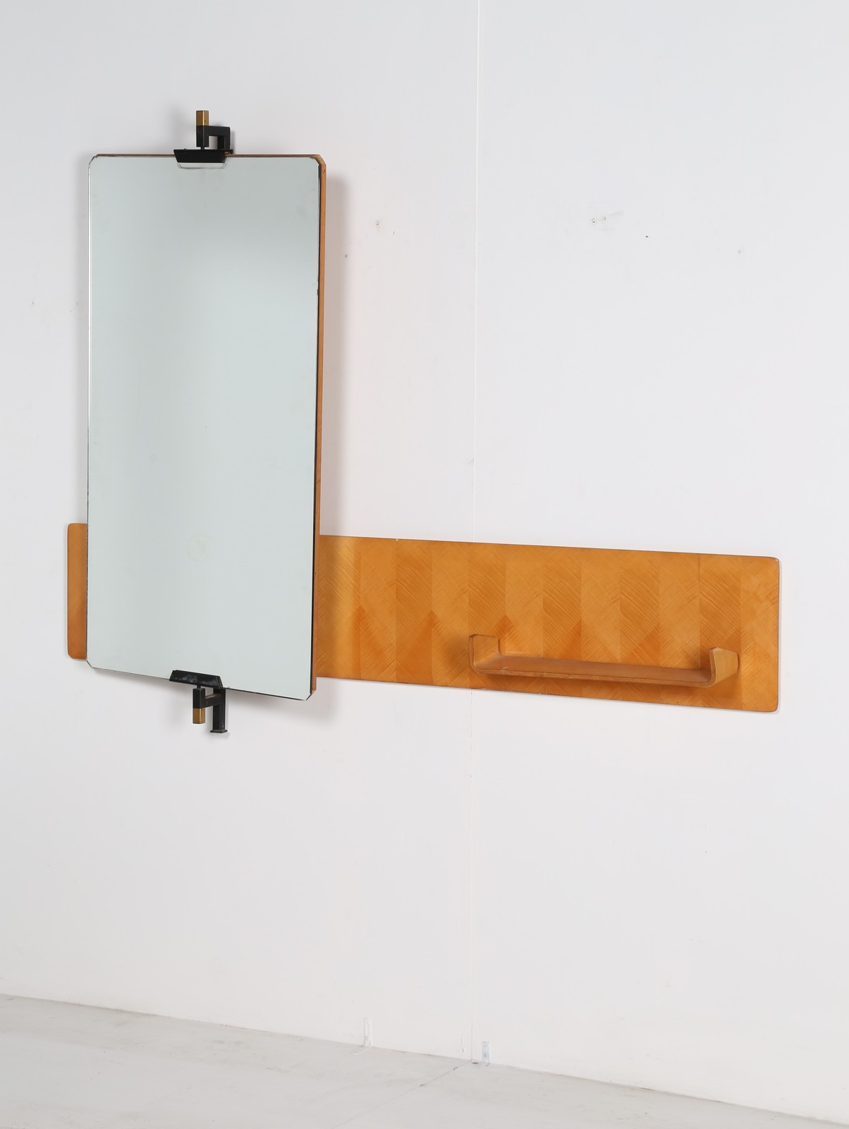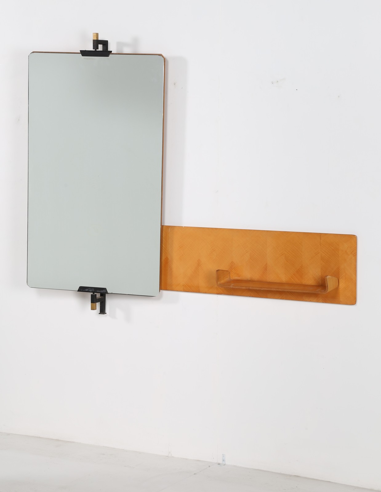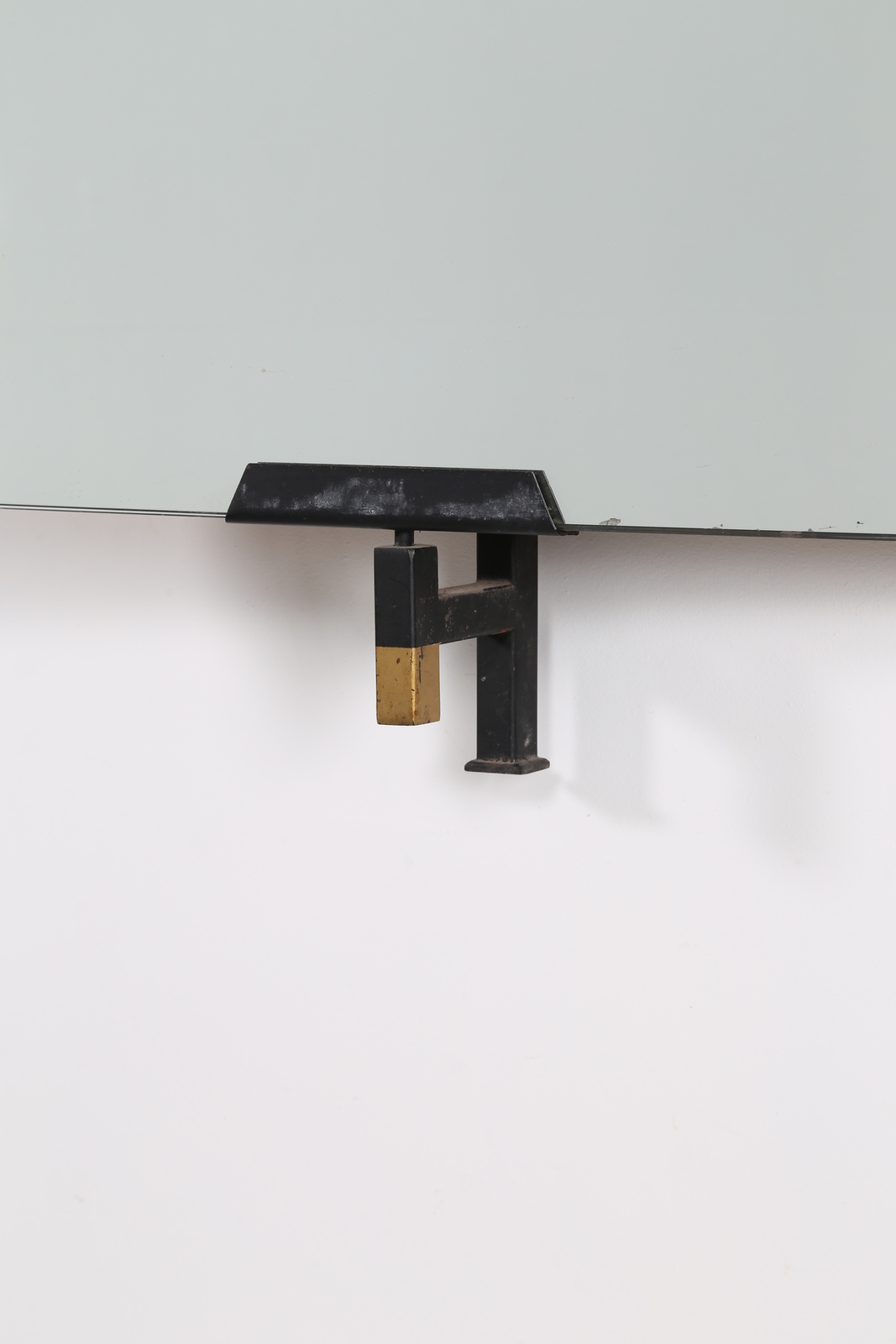 VIITTORIO CHIAIA & MASSIMO NAPOLITANO Specchiera Consol in legno, metallo laccato, ottone e vetro, anni 50. -. Cm 160,00 x 128,00 x 10,00.