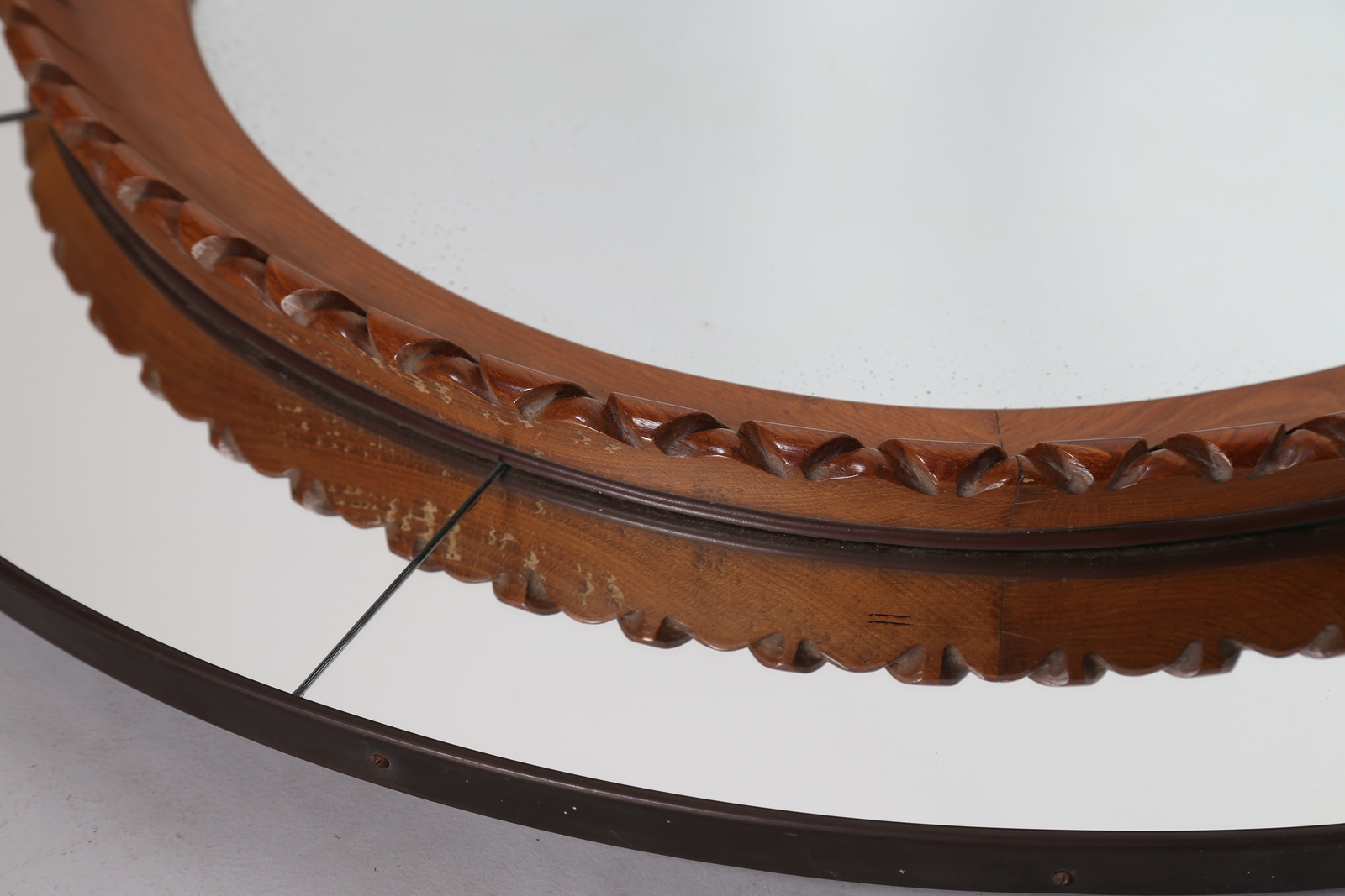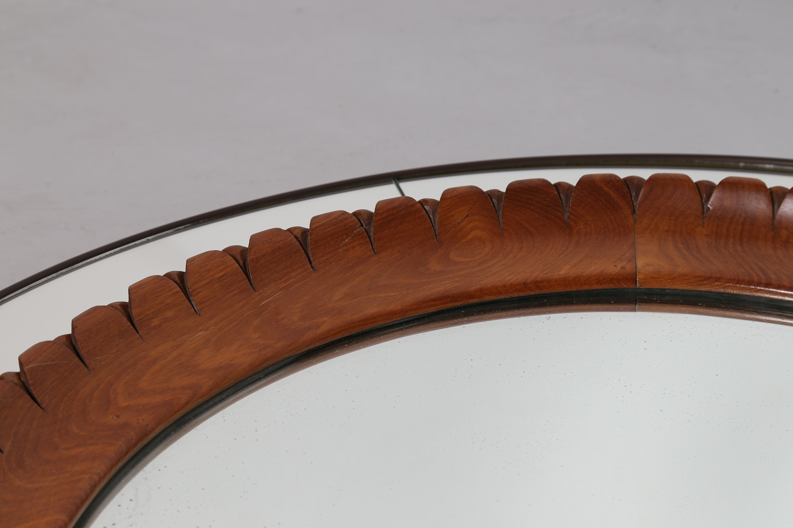 COLLI PIER LUIGI (1895 - 1968) Specchio da parete in vetro con cornice in olmo e bordo in ottone, anni 50. -. Cm 96,00 x 96,00 x 10,00.