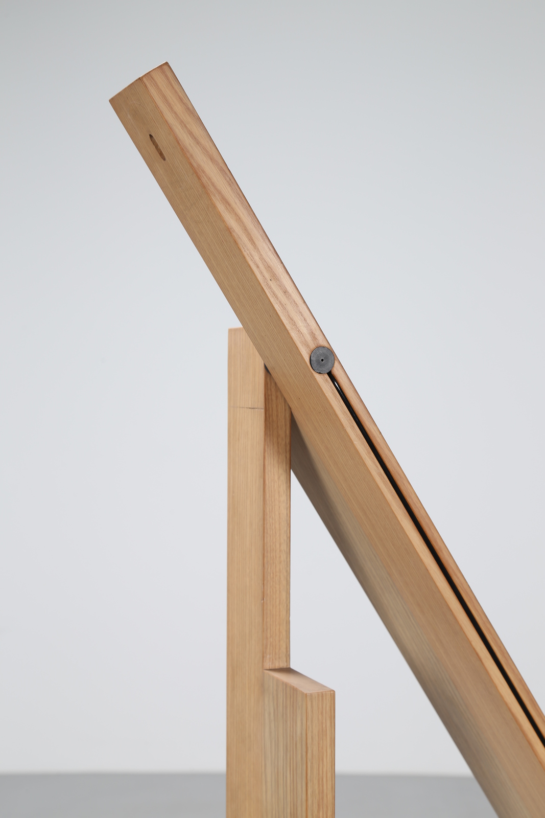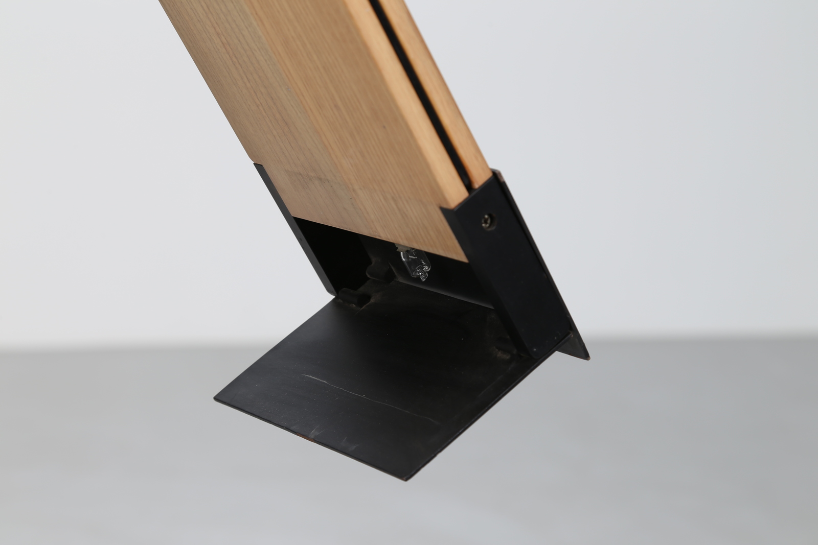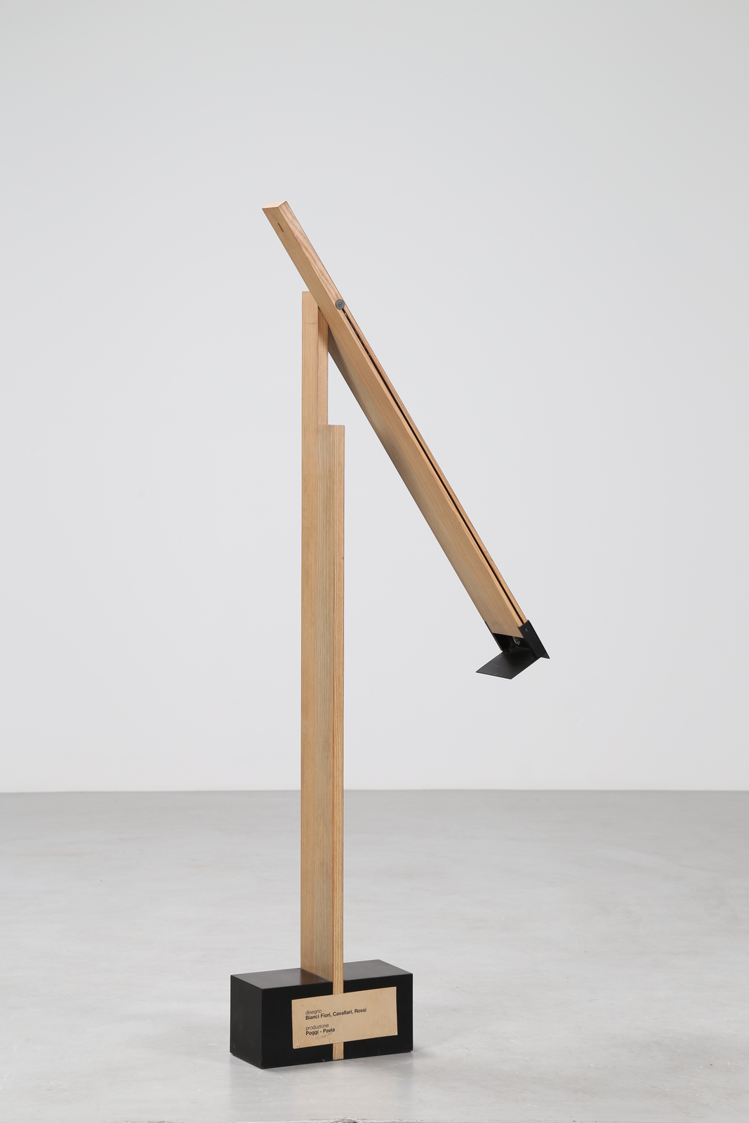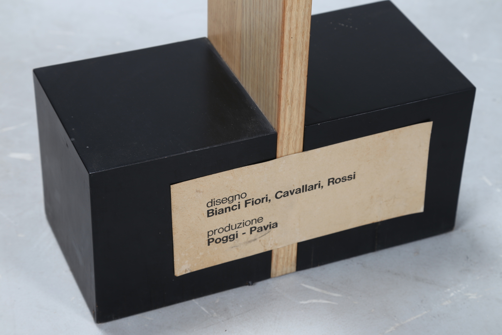 BIANCI FIORI, CAVALLARI, ROSSI. Lampada da terra in legno e metallo laccato, pezzo unico presentato alla Triennale per Poggi Pavia. . -. Cm 68,00 x 178,00 x 16,00.