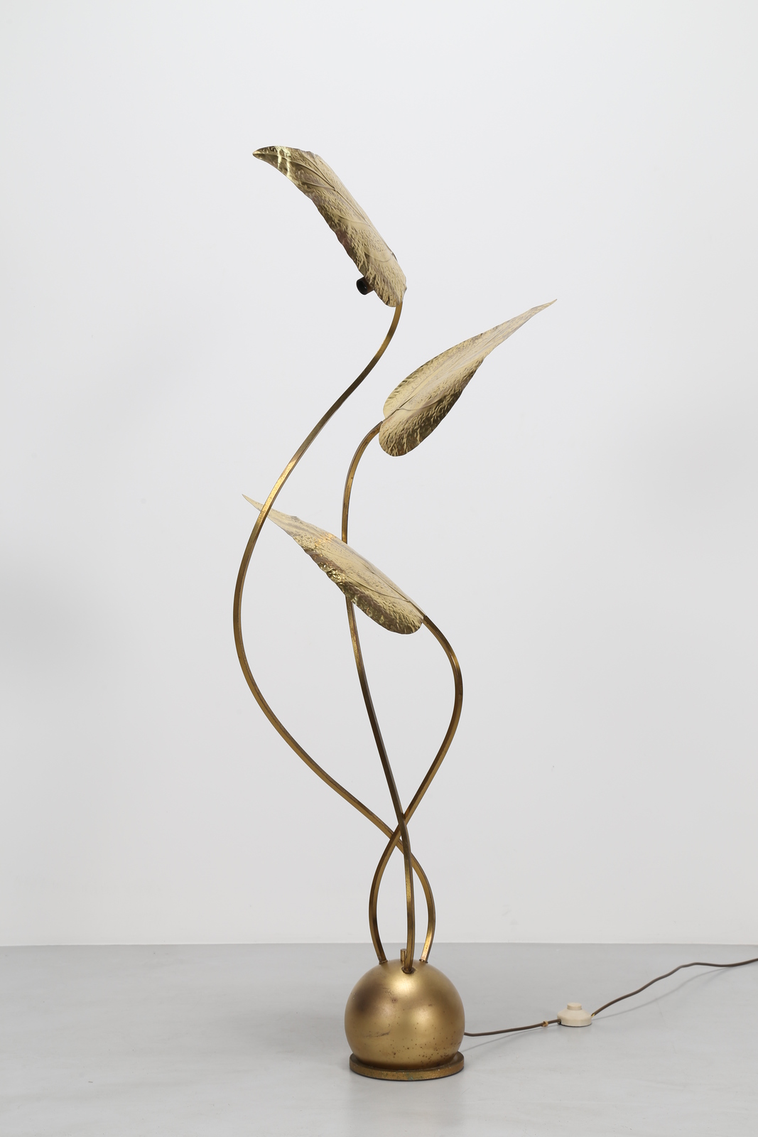 BARBI TOMMASO Lampada da terra a tre foglie in ottone martellato, per Bottega...