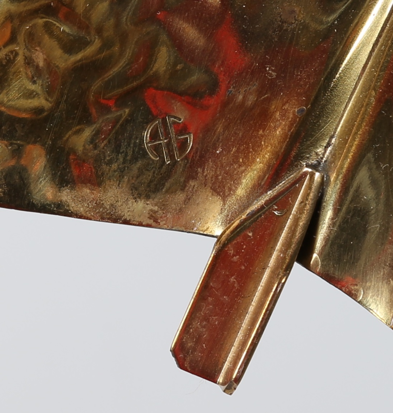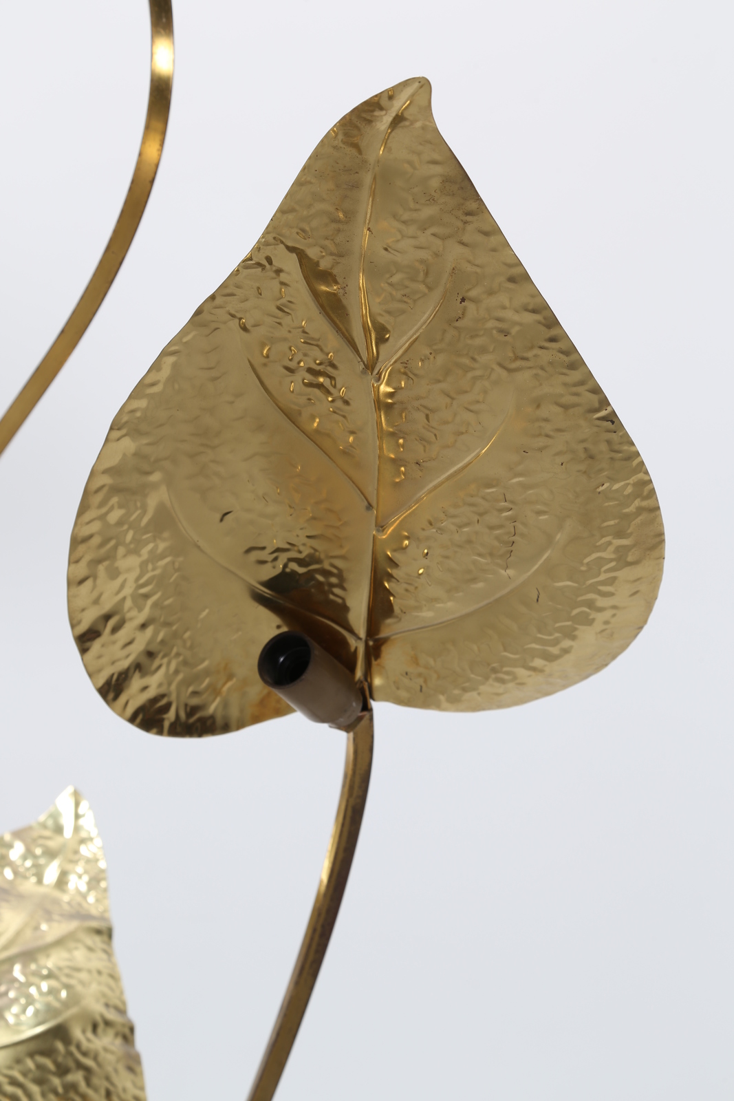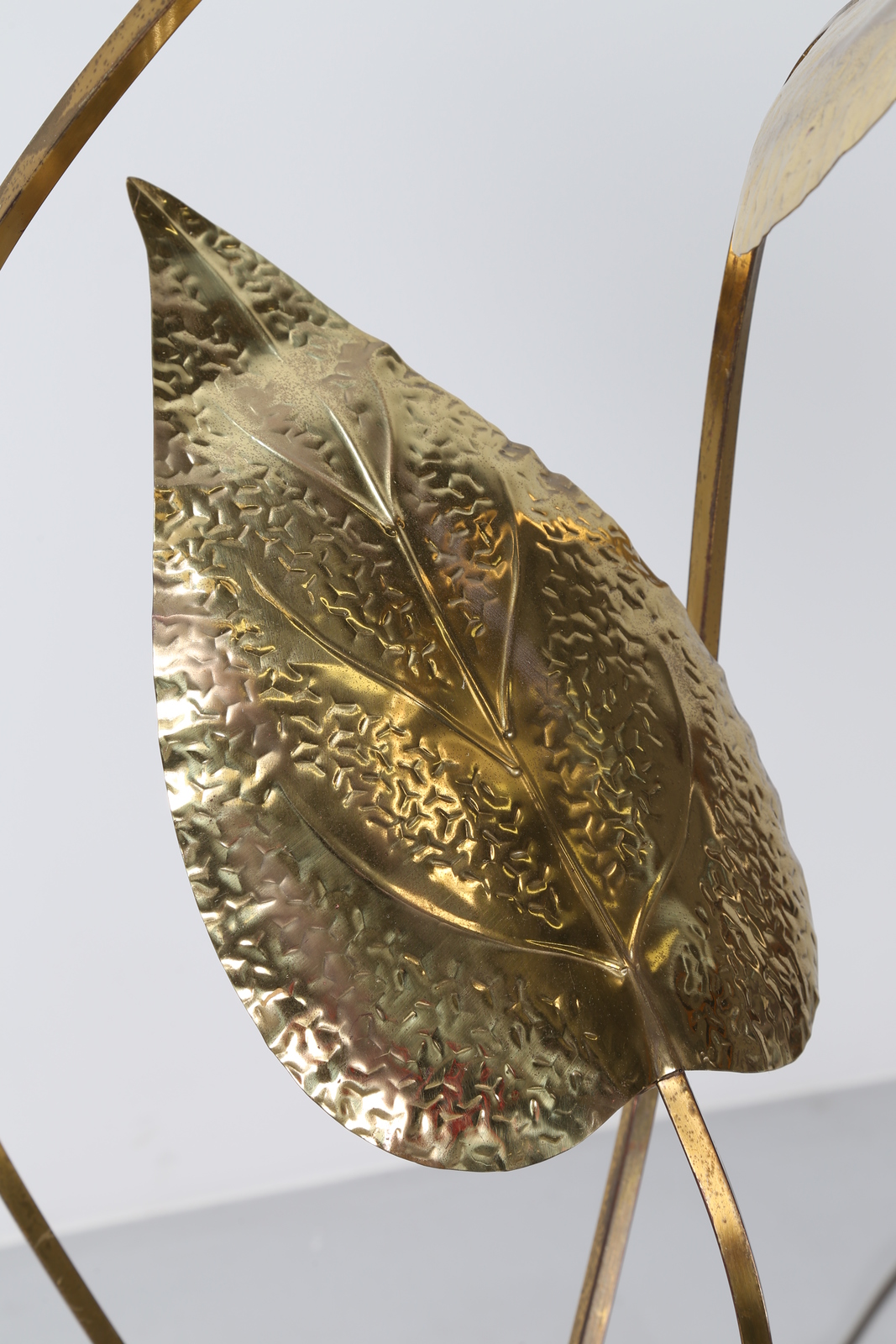 BARBI TOMMASO Lampada da terra a tre foglie in ottone martellato, per Bottega Gadda, anni 70 . . Cm 65,00 x 151,00 x 48,00.