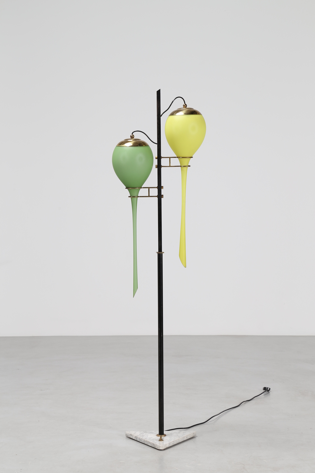 Lot 123 | STILNOVO Lampada da terra con base in marmo, metallo dettagli in ottone e...