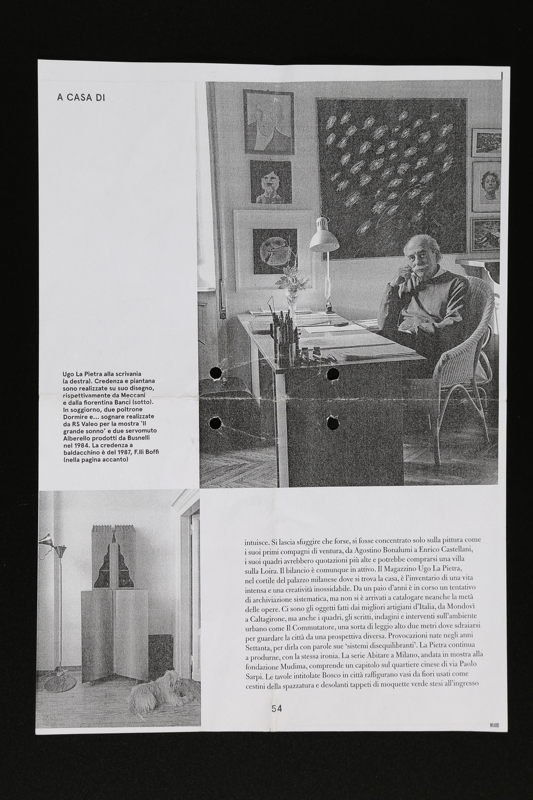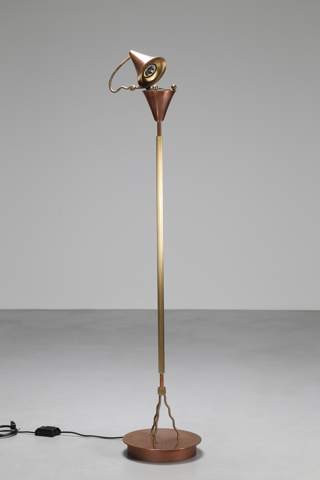 LA PIETRA UGO (n. 1938) Lampada “prototipo” da terra in rame e ottone realizzato in due esemplari da Banci, Firenze 1978. . Cm 43,00 x 190,00 x 38,00. Presente carteggio bozzetto originale del prototipo, foto interni dimora dell’autore.