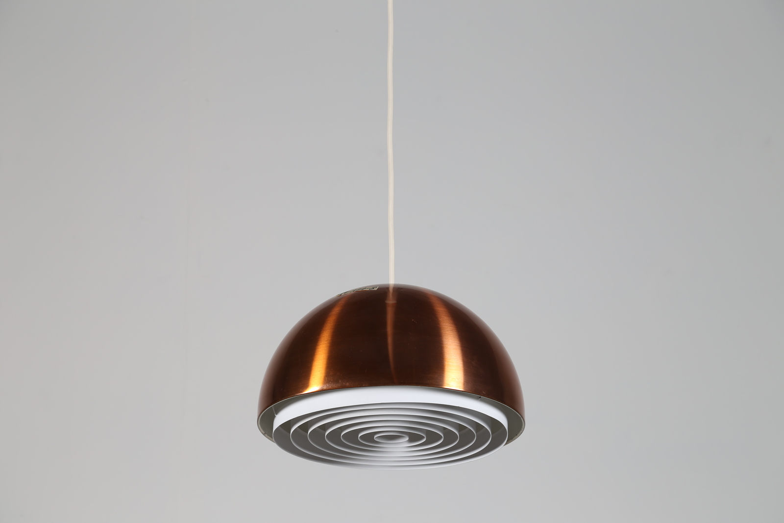 VILHELM WOHLERT e JORGEN BO Lampada a sospensione in rame spazzolato e...