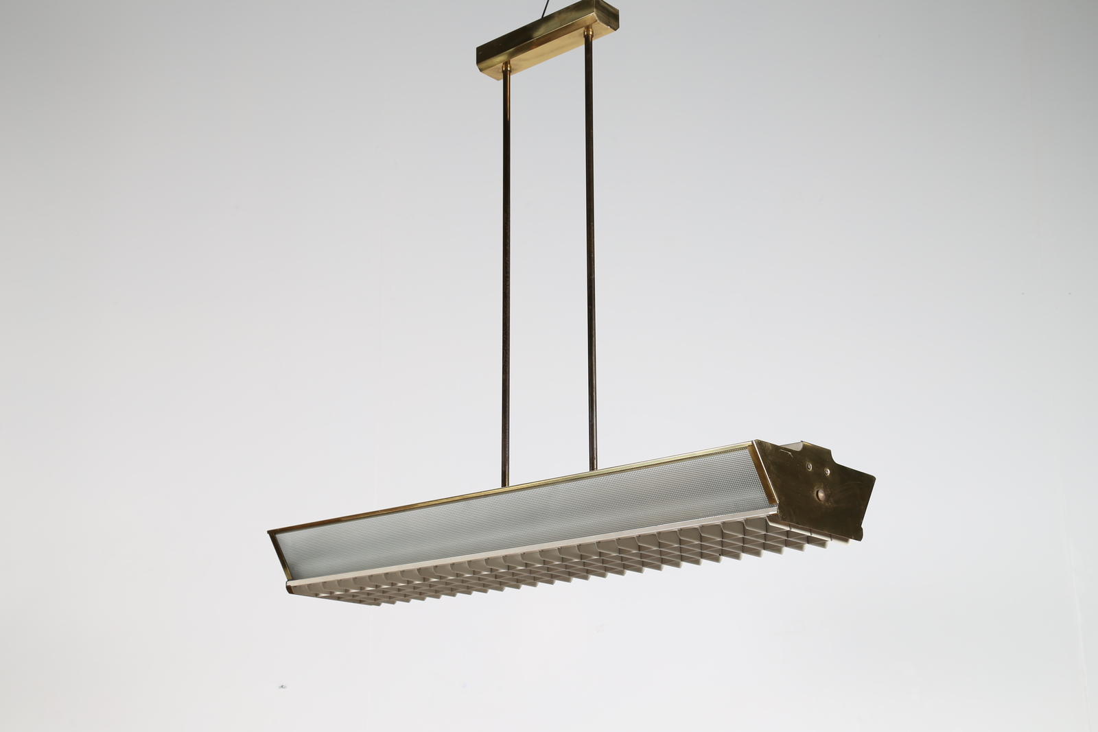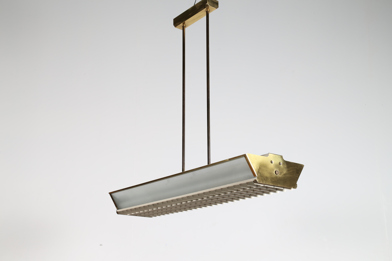 Lot 200 | MANIFATTURA ITALIANA Lampada a sospensione in alluminio, ottone e vetro per....