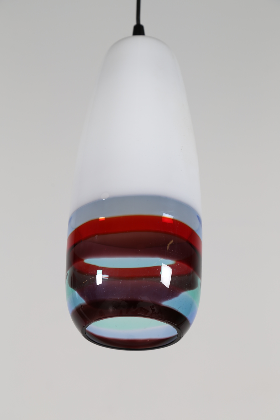 VIGNELLI MASSIMO (n. 1931) Lampada a sospensione in vetro di Murano prod....