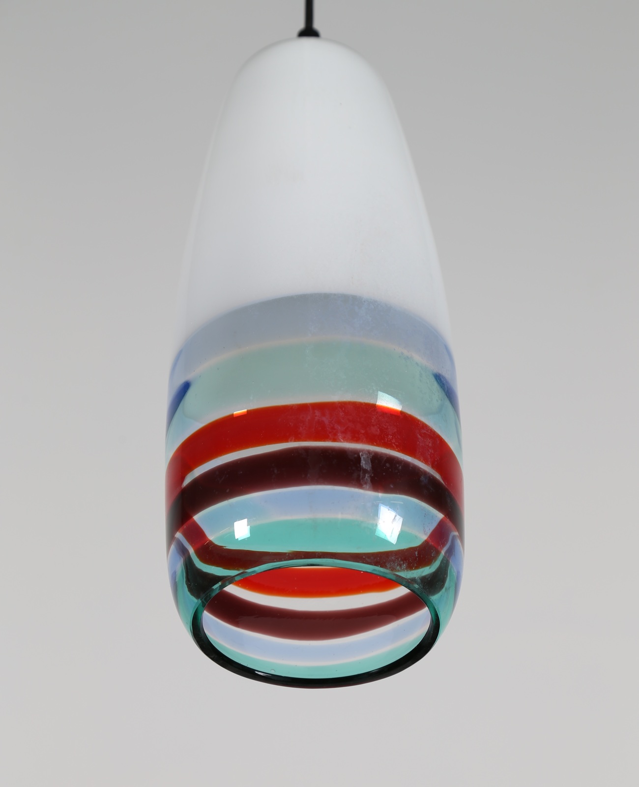 VIGNELLI MASSIMO (n. 1931) Lampada a sospensione in vetro di Murano prod....