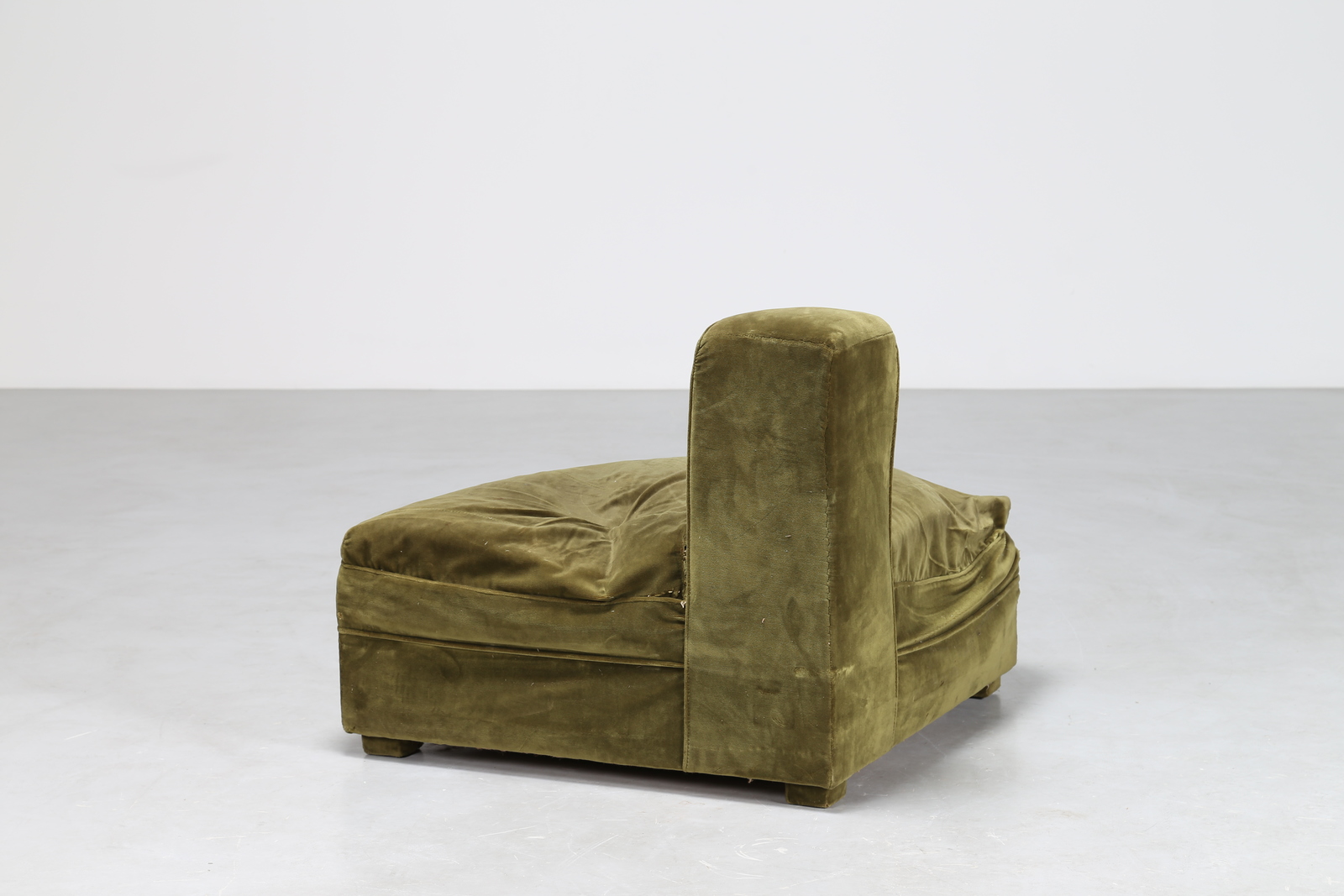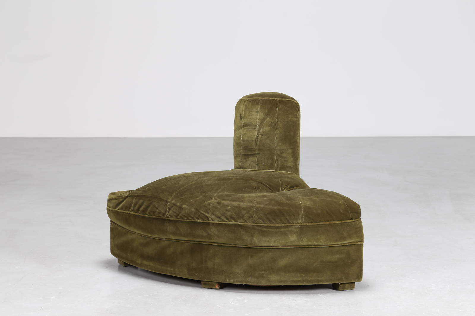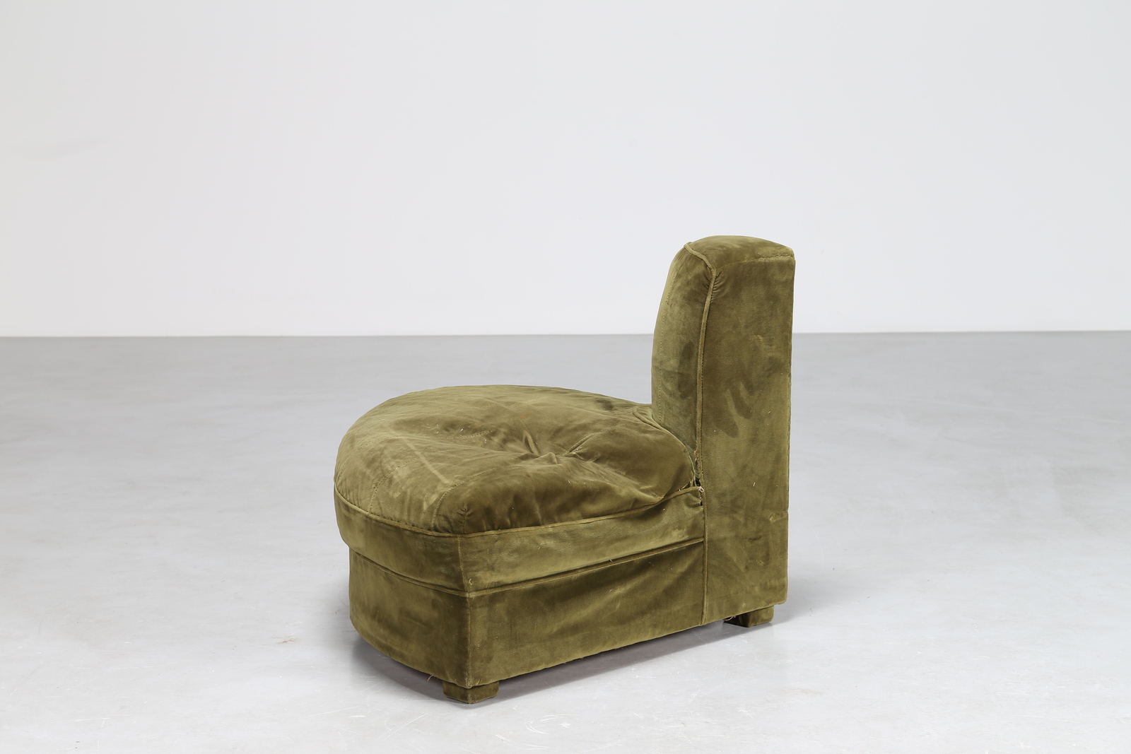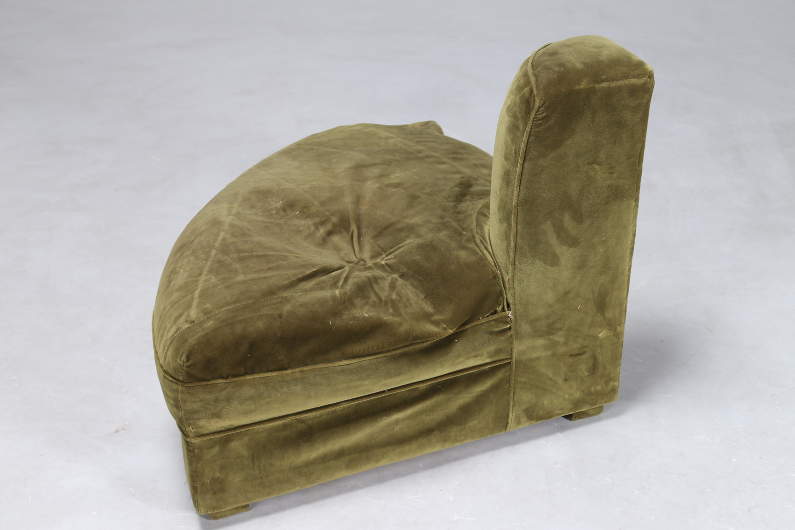 MANIFATTURA ITALIANA Poltrona angolare in legno e velluto, anni 40. -. Cm...