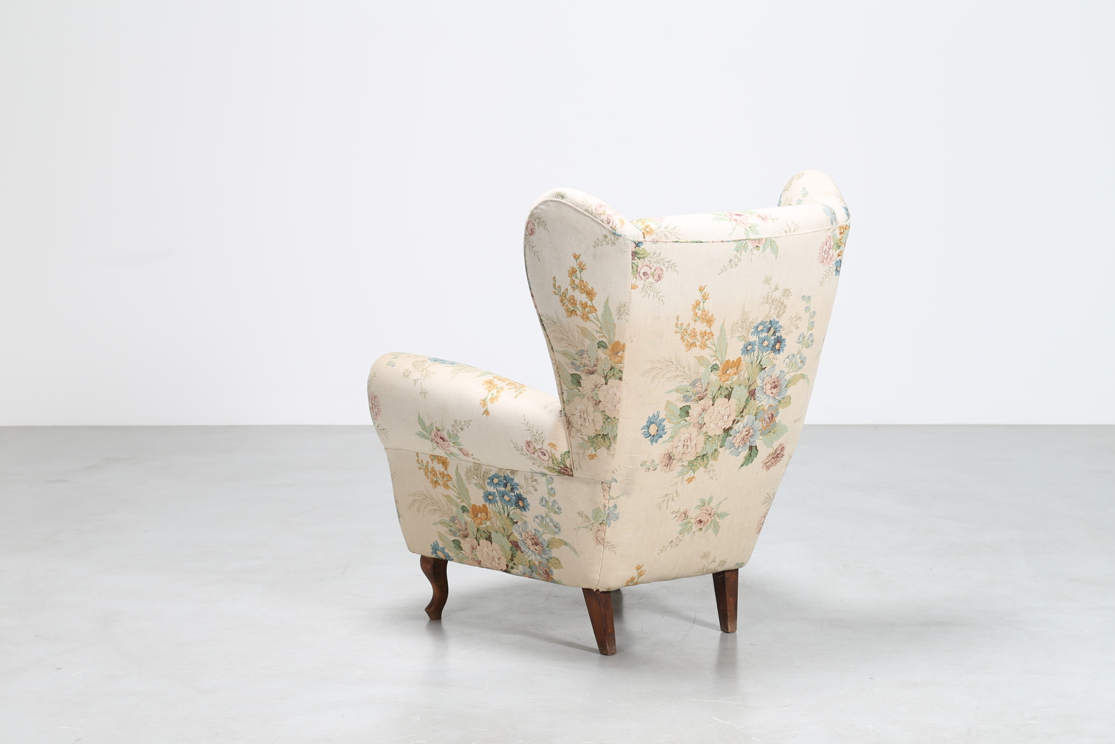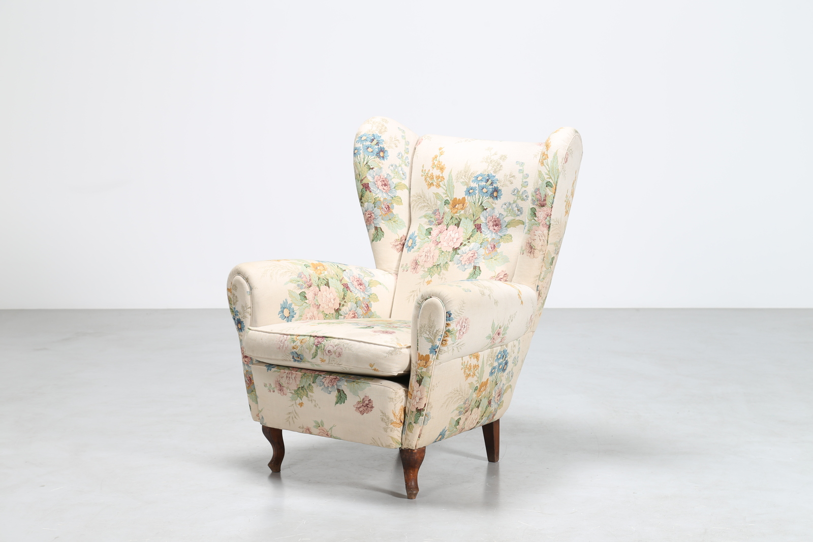 MANIFATTURA ITALIANA Poltrona in tessuto e legno anni 50. -. Cm 86,00 x...