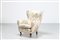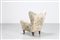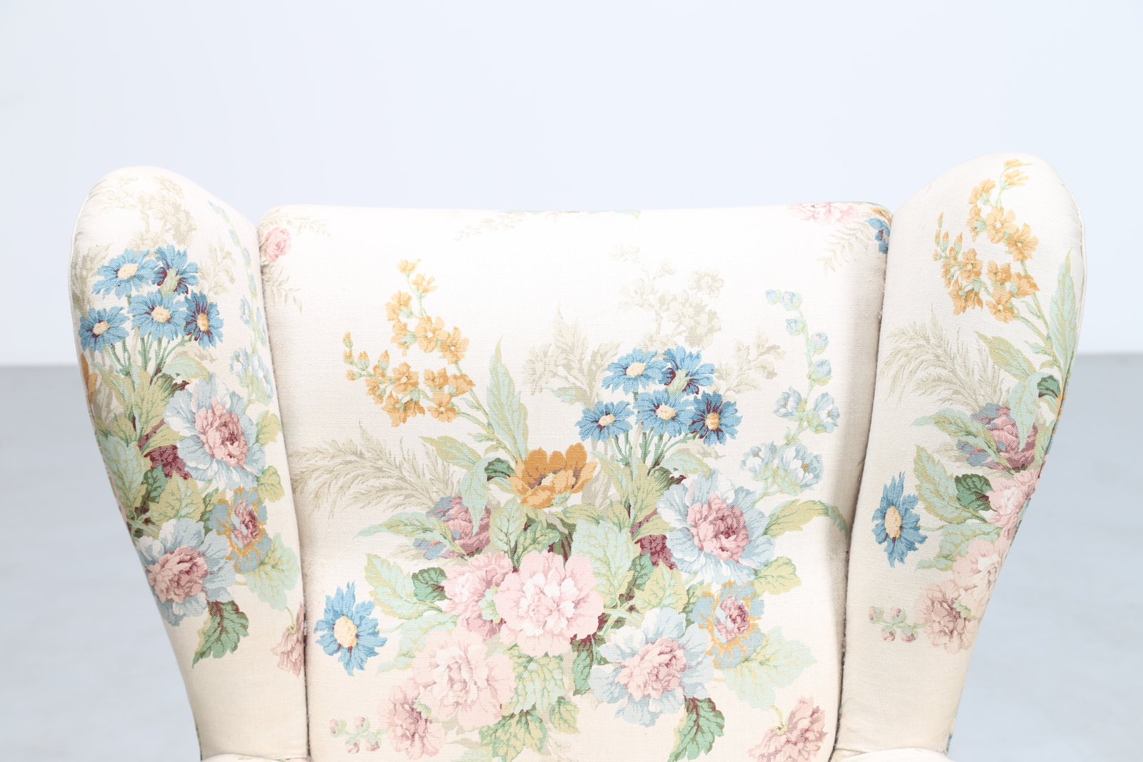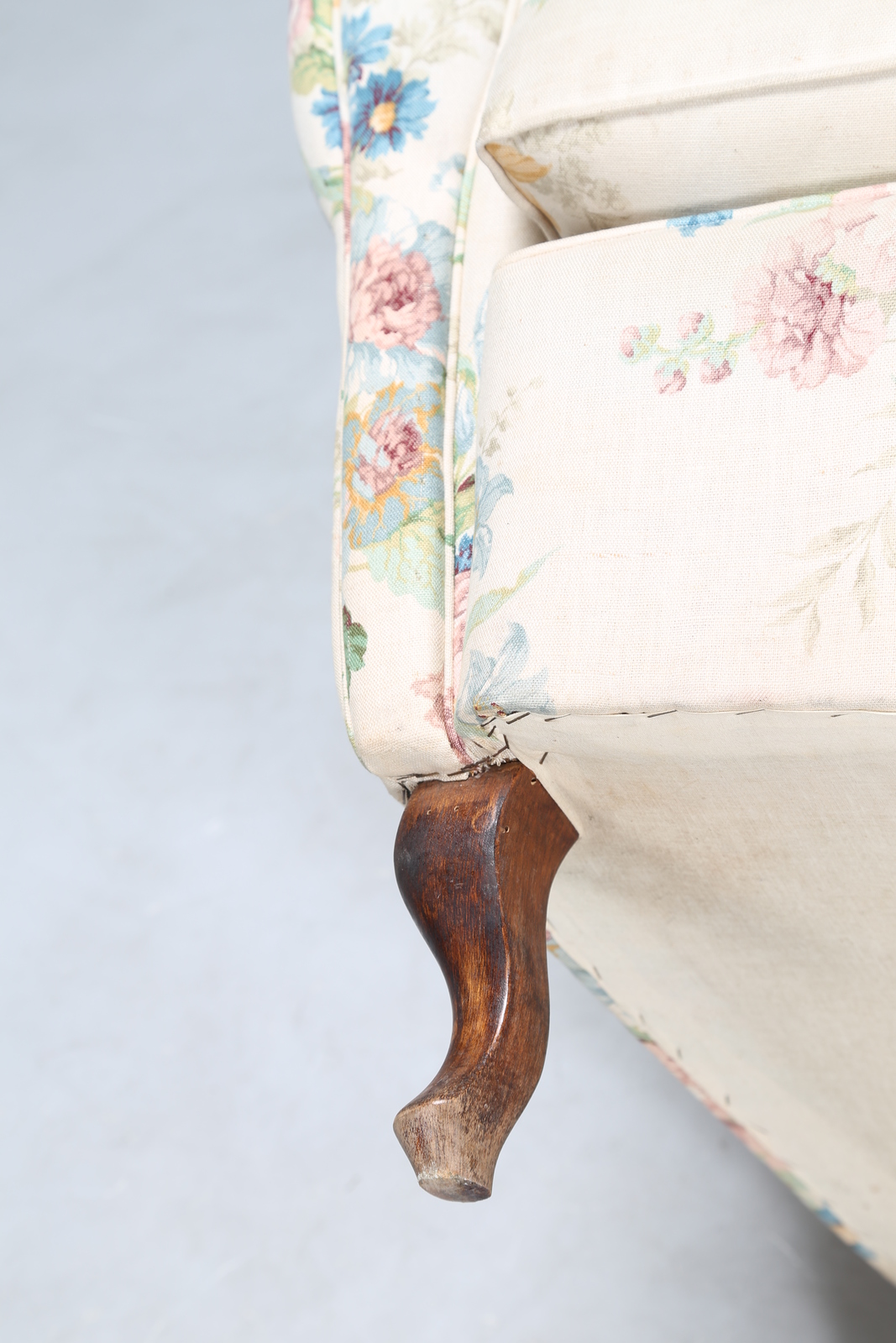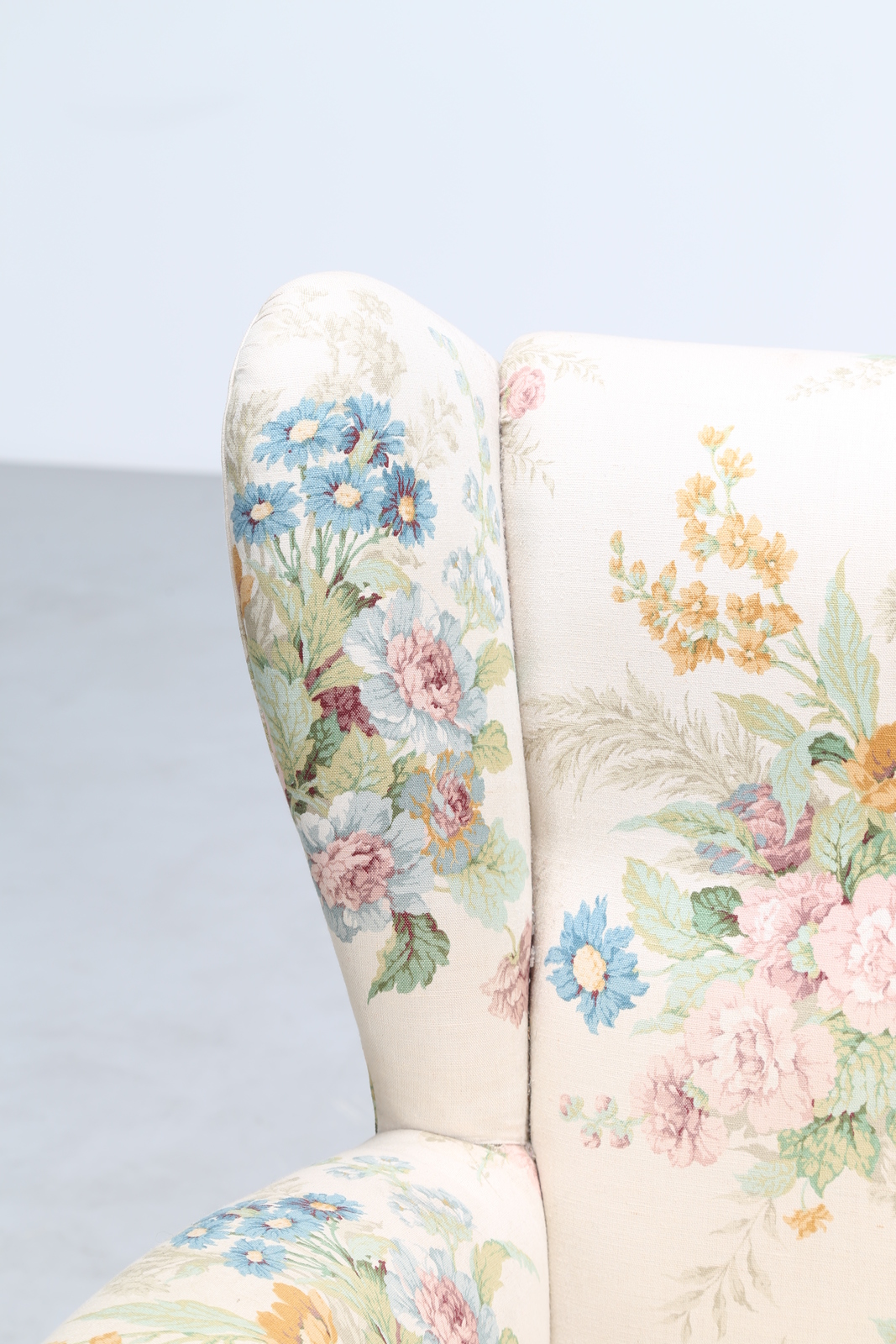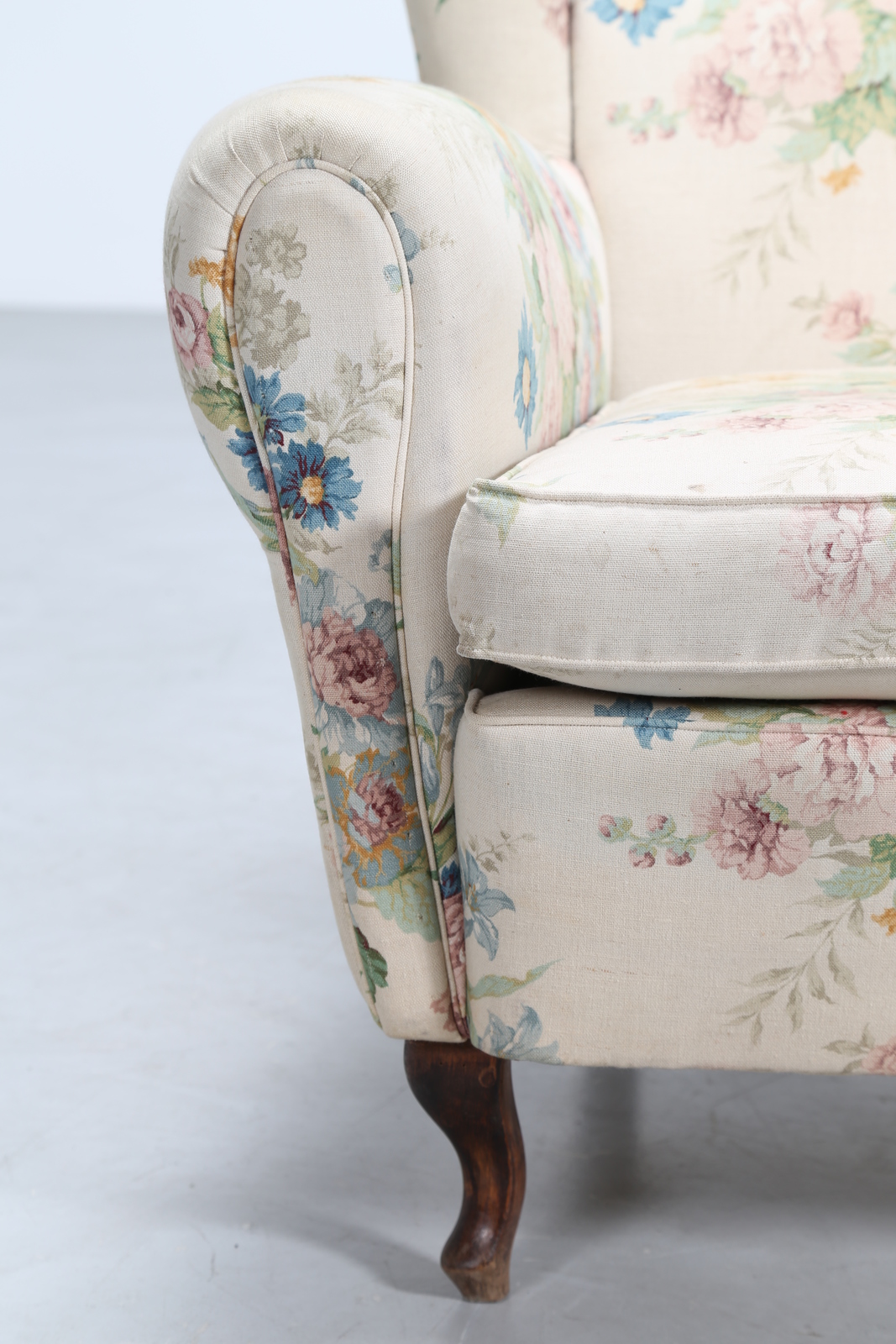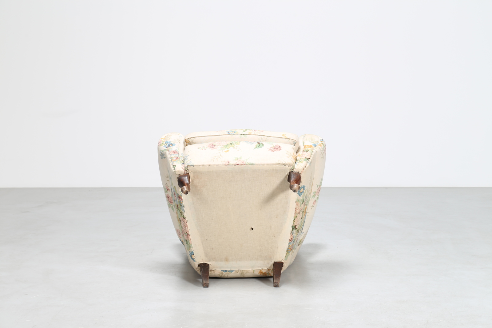 MANIFATTURA ITALIANA Poltrona in tessuto e legno anni 50. -. Cm 86,00 x 103,00 x 92,00.