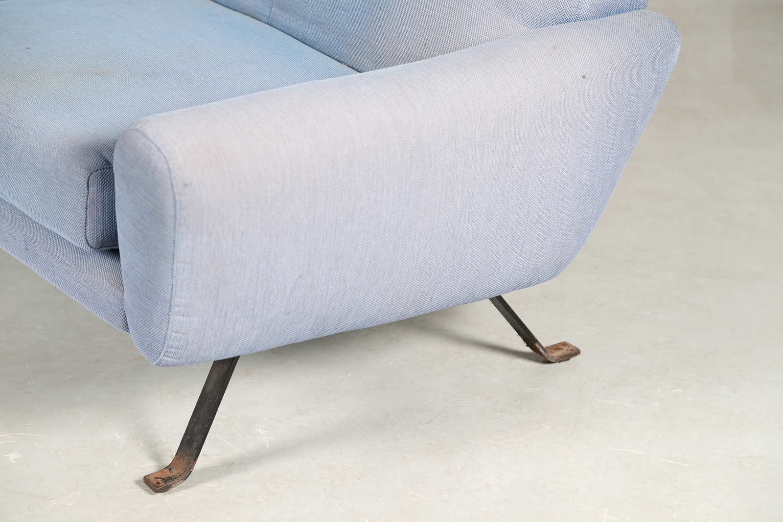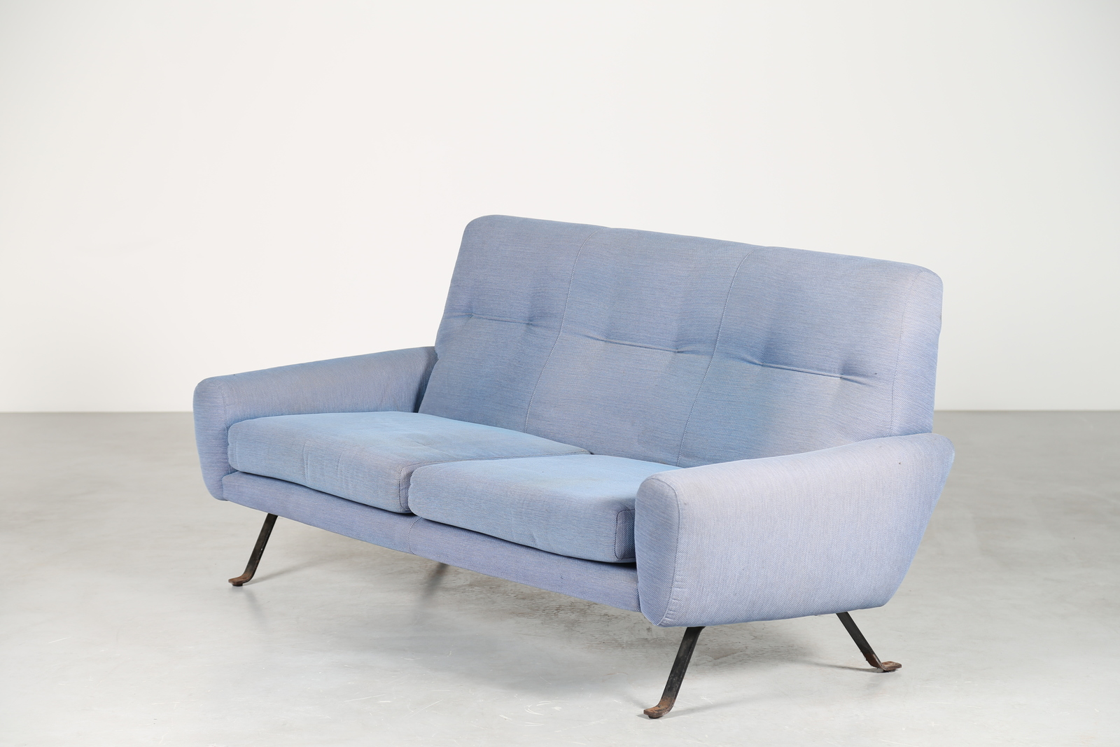 MANIFATTURA ITALIANA Divano in tessuto e metallo, anni 60. -. Cm 185,00 x 85,00 x 80,00.