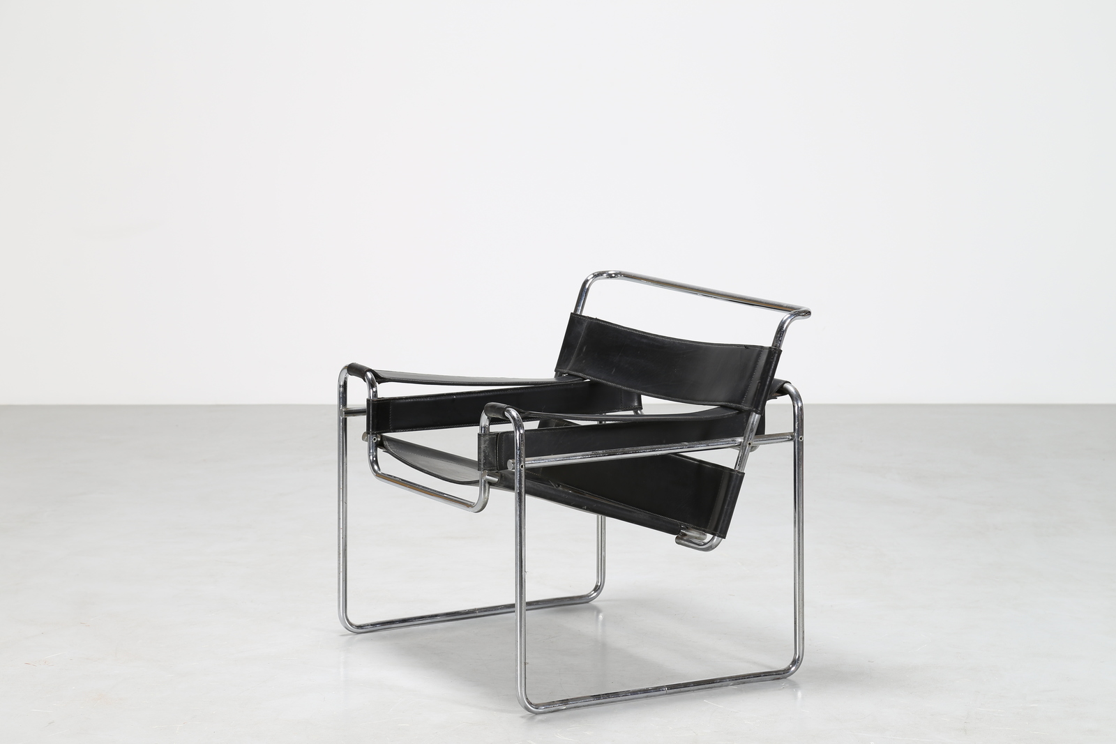 BREUER MARCEL LAJOS (1902 - 1981) Poltrona in metallo cromato e cuoio nero mod. Wassily, per Gavina Anni 60. -. Cm 79,00 x 73,50 x 68,00.