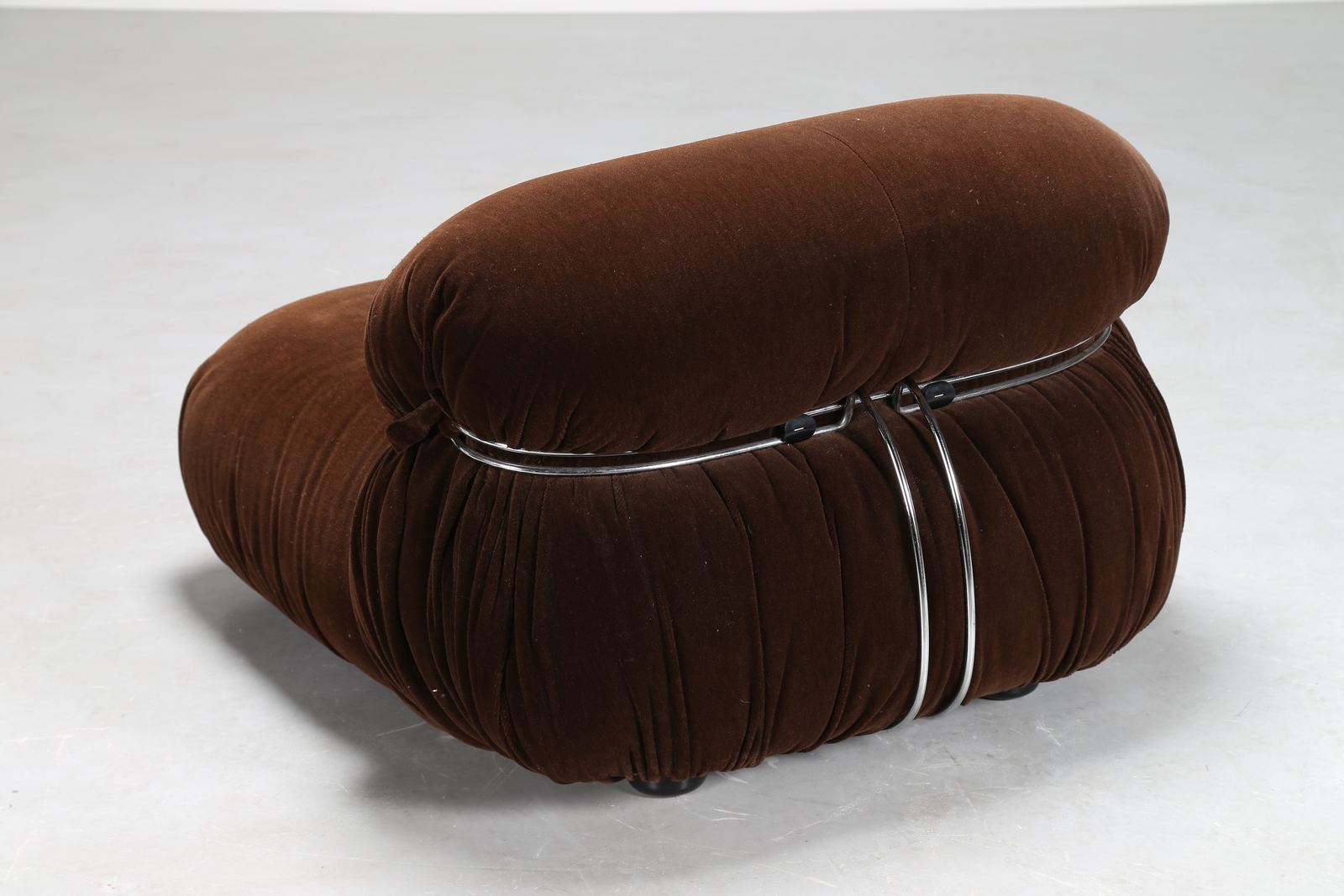 SCARPA AFRA & TOBIA Poltrona con struttura in metallo cromato e velluto, mod, Soriana, per Cassina, anni 70. -. Cm 103,00 x 65,00 x 105,00. Presente etichetta.