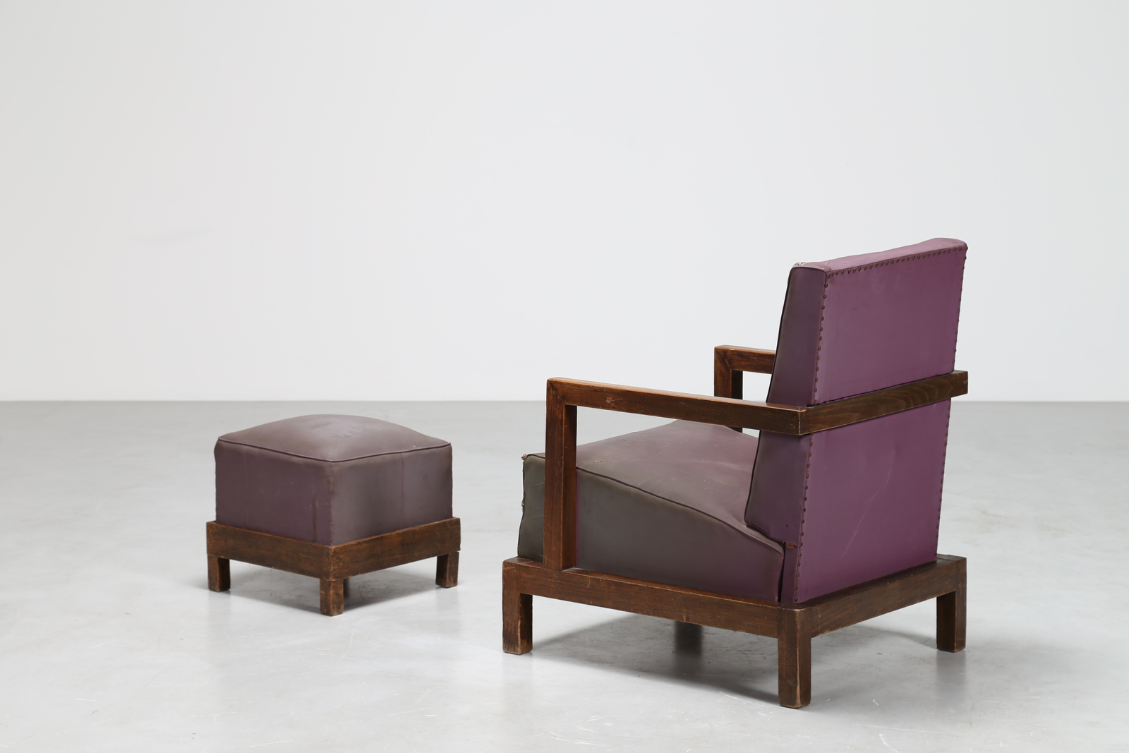 MANIFATTURA ITALIANA Poltrona e pouf in legno e sky,anni 40. -. Cm 64,00 x...