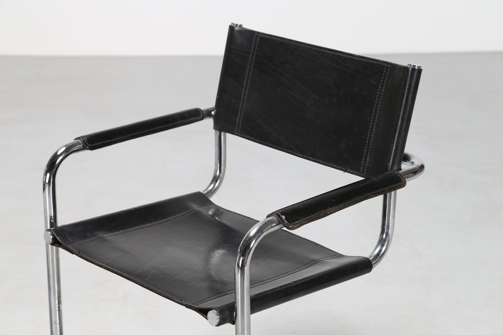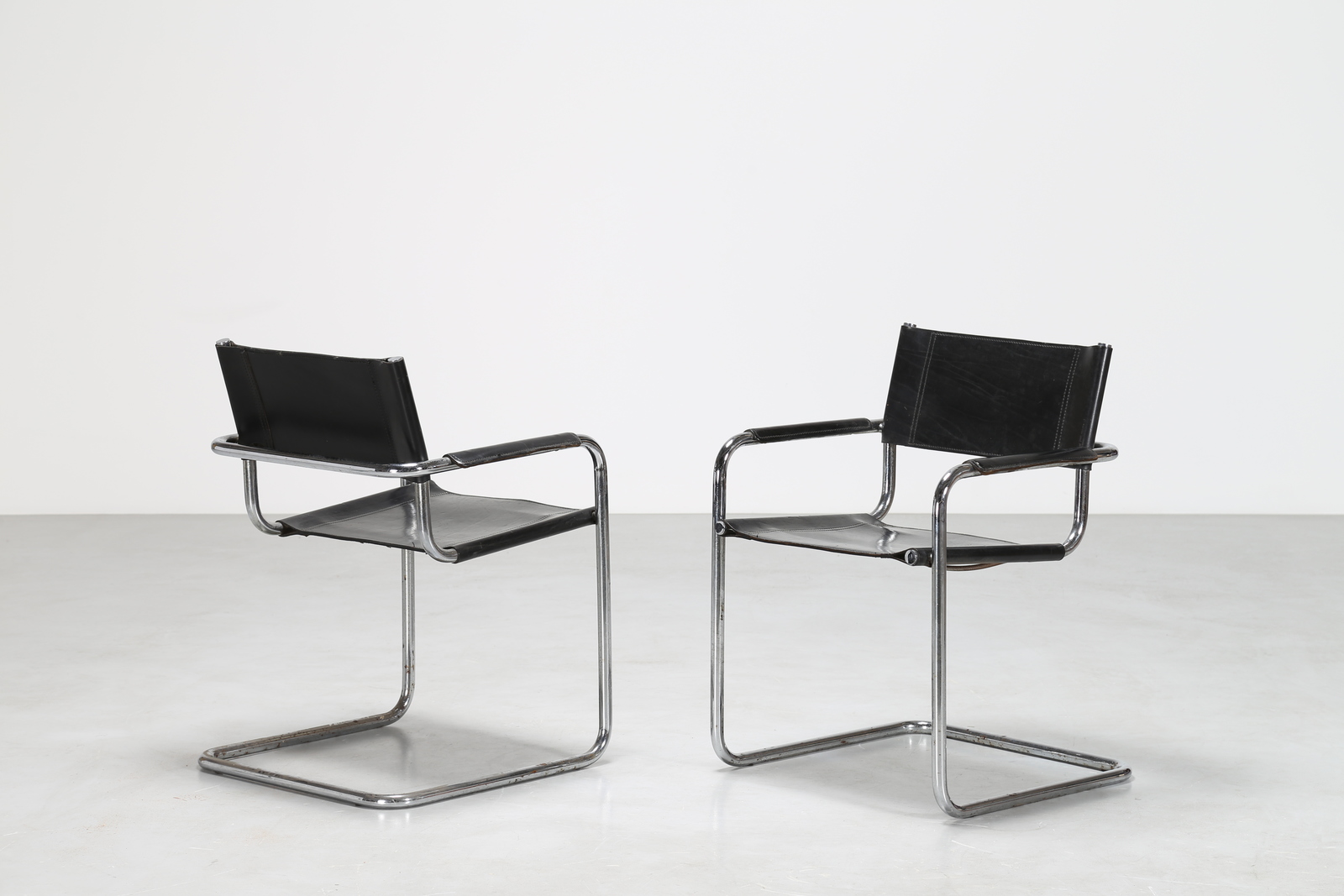 STAM MART Coppia di poltroncine in tubo d'acciaio e cuoio mod. Cantilever,...