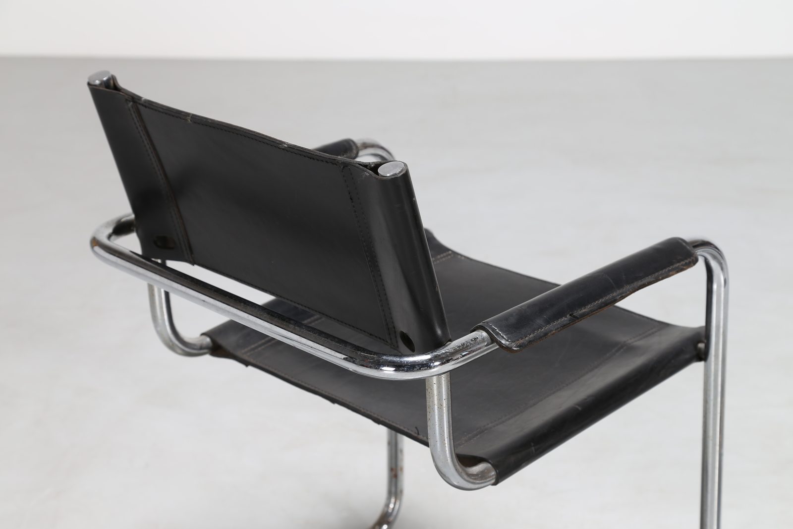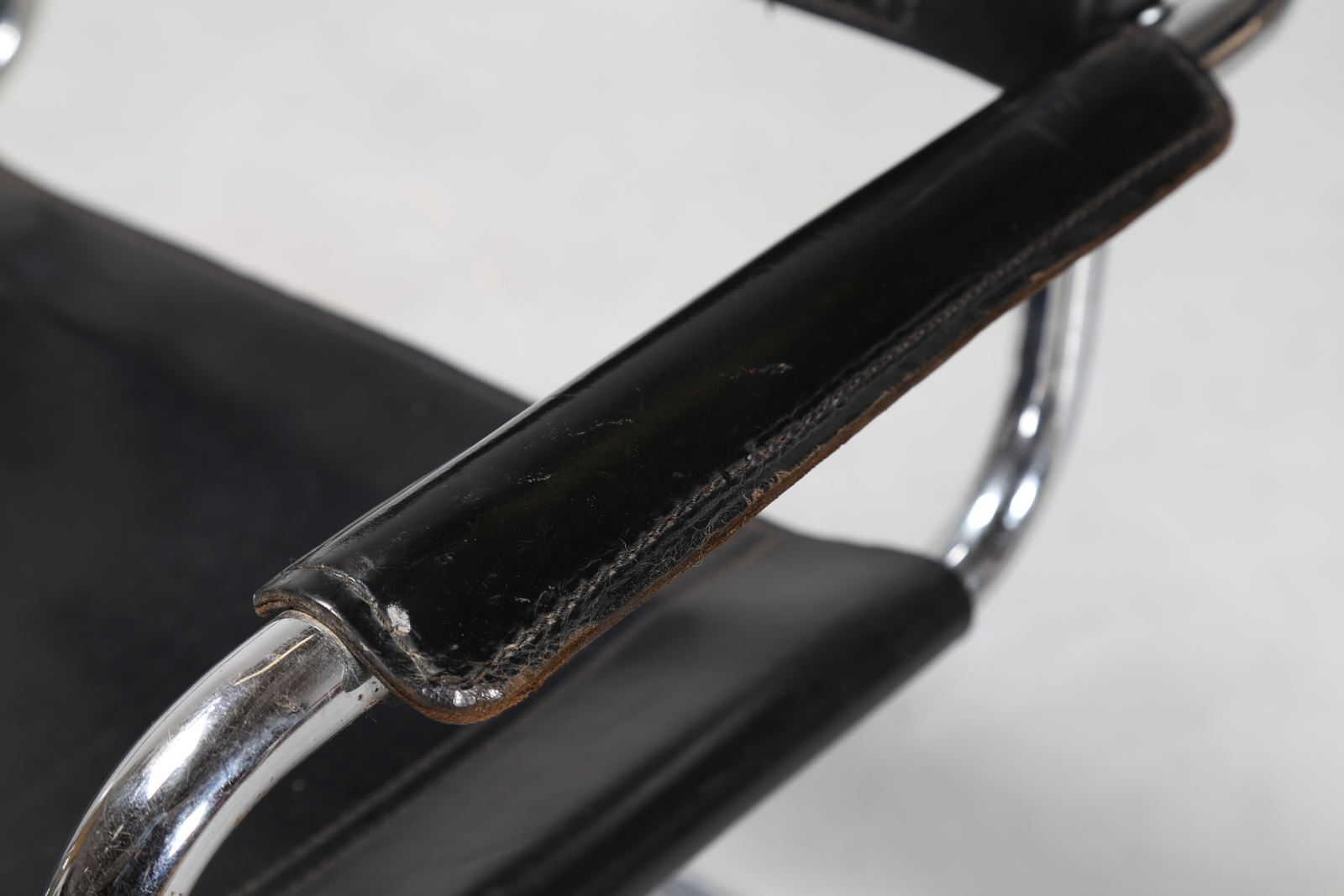 STAM MART Coppia di poltroncine in tubo d'acciaio e cuoio mod. Cantilever, per . -. Cm 61,00 x 79,00 x 58,00.