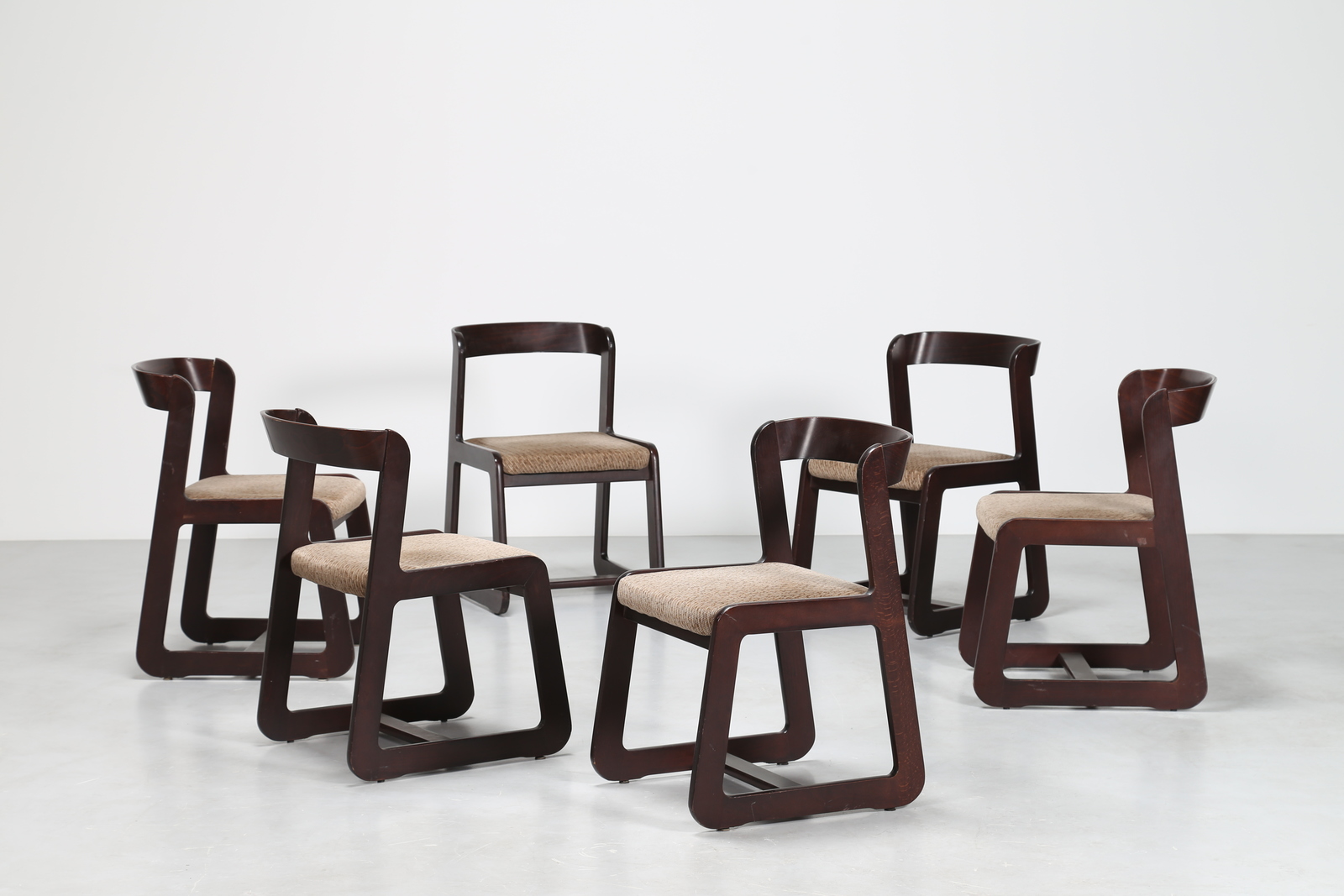 SABOT MARIO Sei sedie in lego e tessuto, anni 70. -. Cm 46,00 x 74,00 x 55,00.