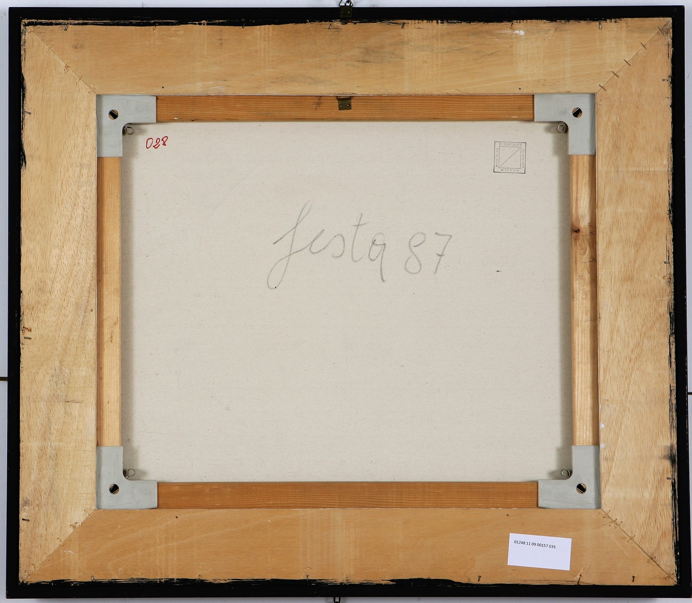Autentica dell'artista e timbro della galleria Il Mercante su fotografia. Al retro reca il timbro della galleria Il Mercante, Milano; firma e anno. Cornice presente.