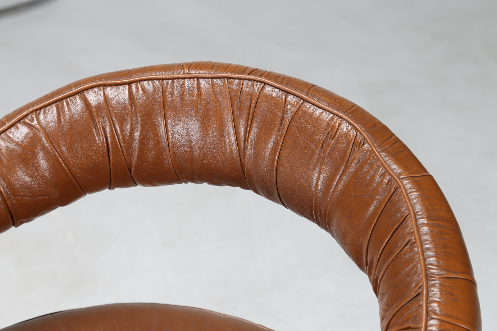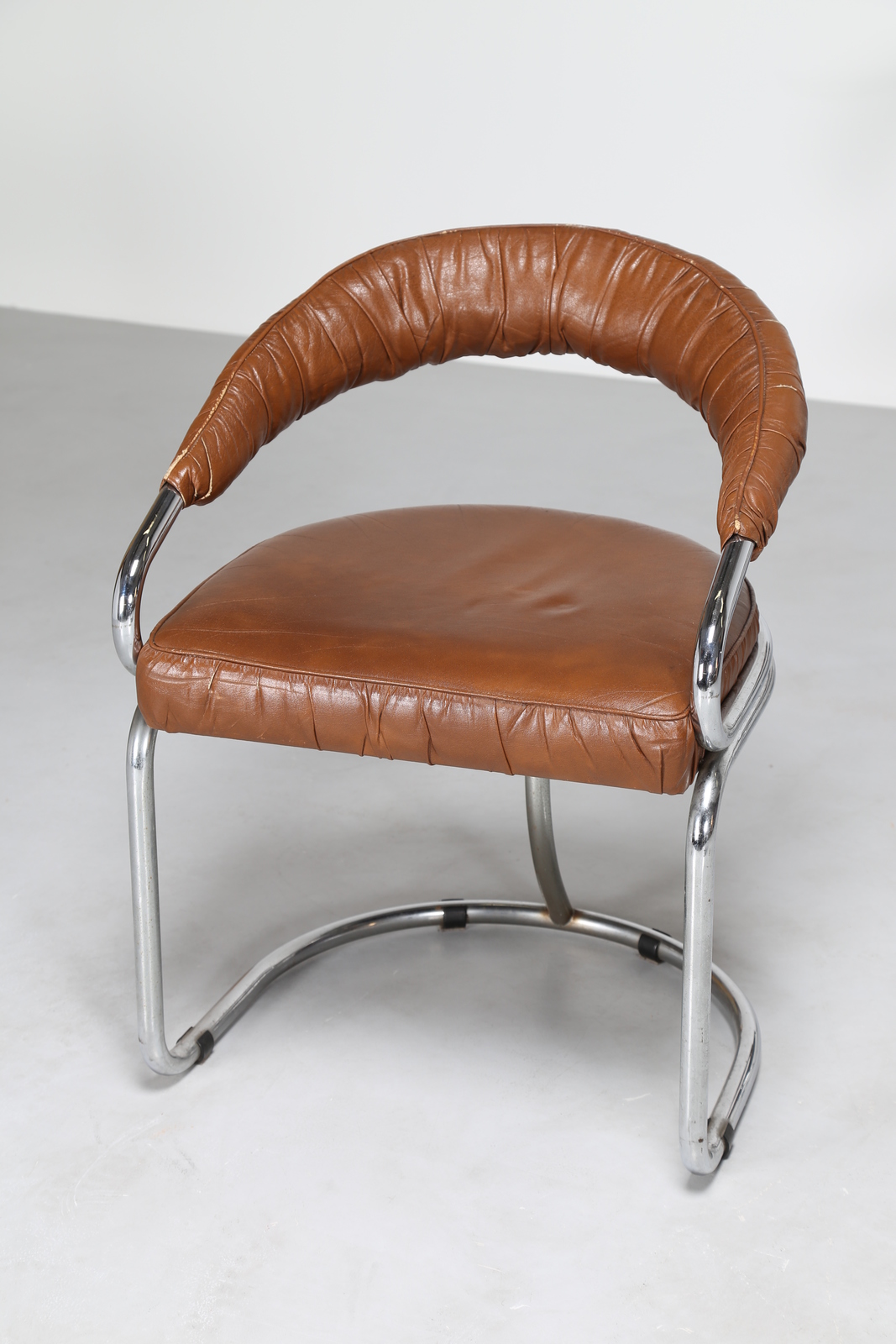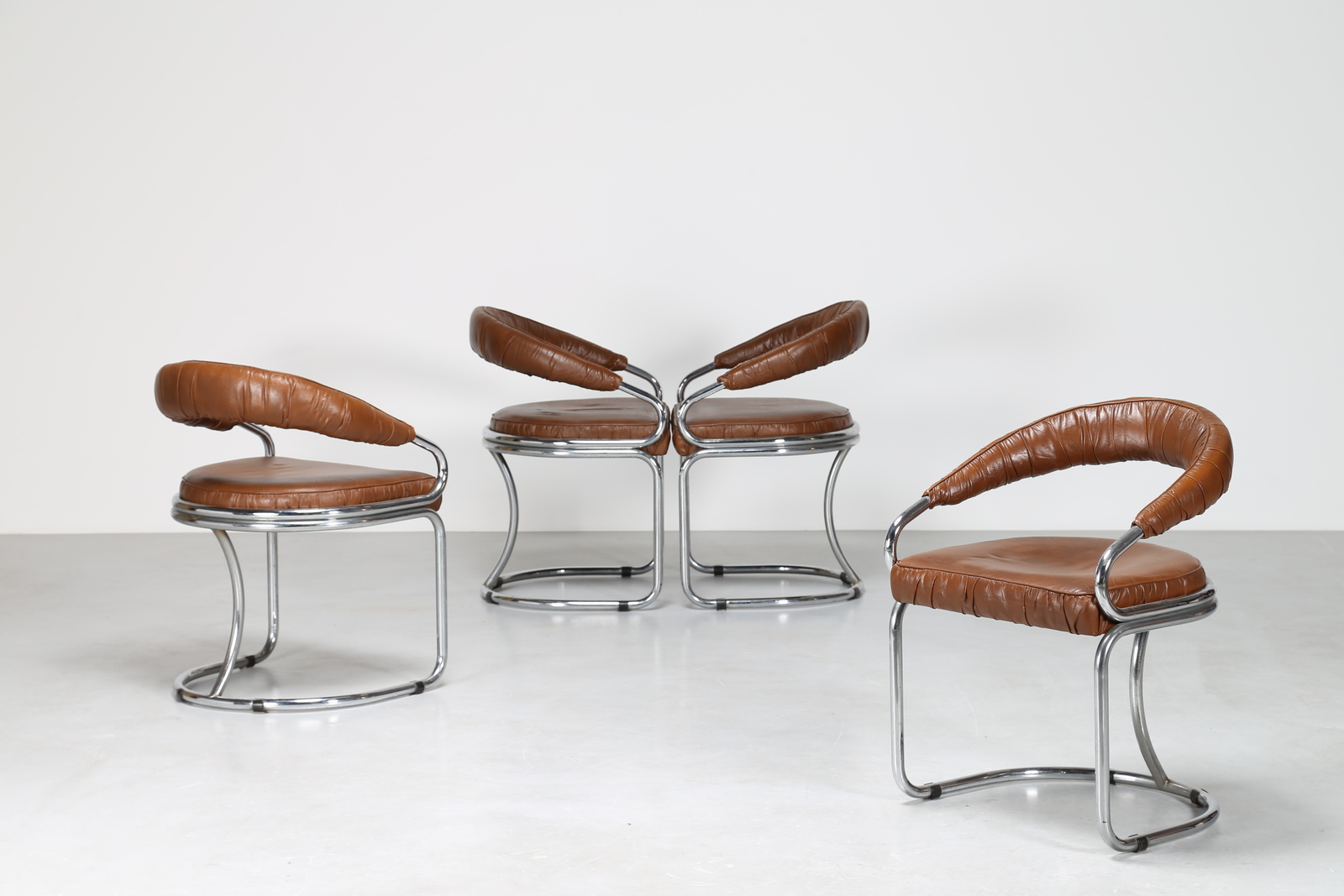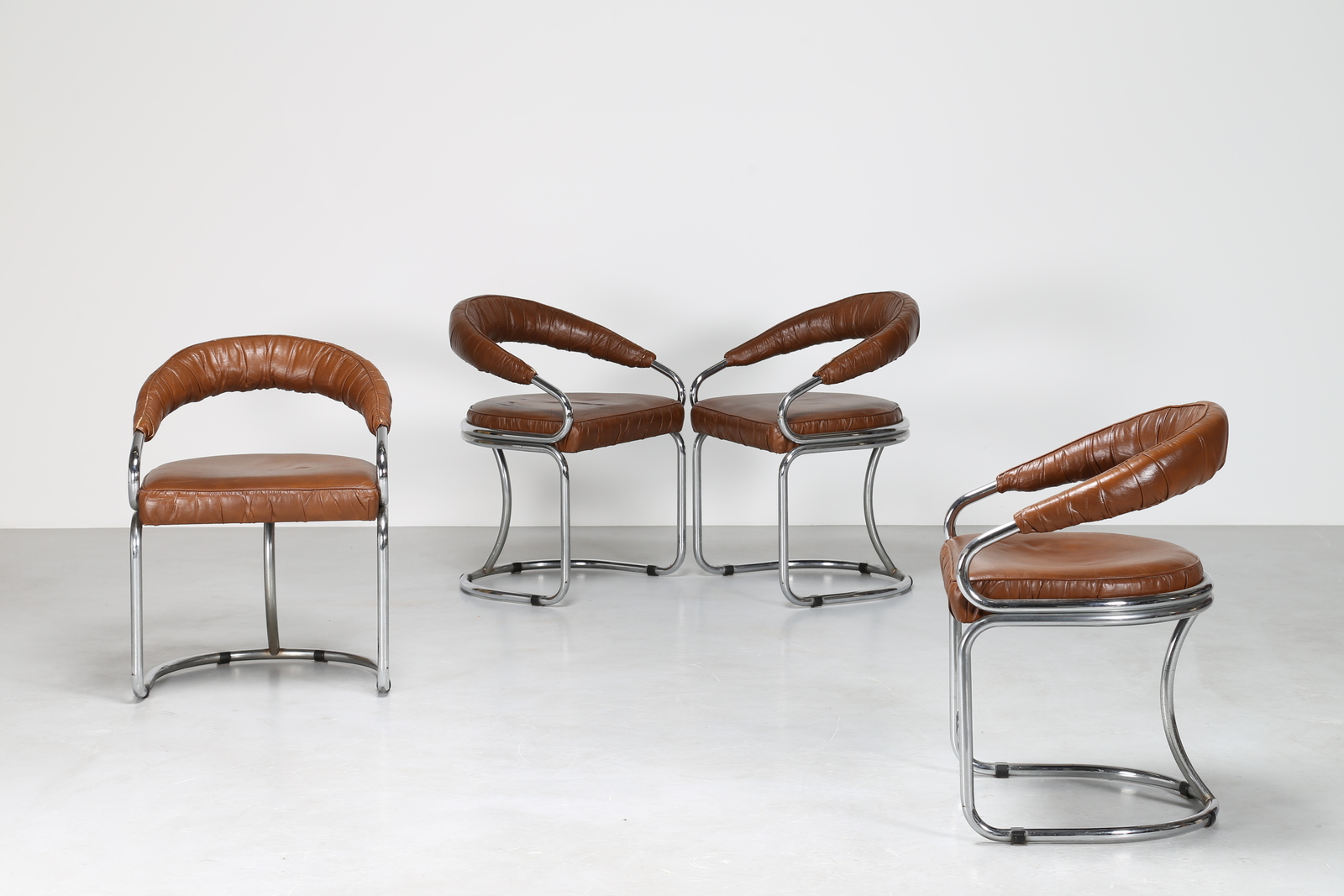 MANIFATTURA ITALIANA Quattro poltroncine in metallo cromato e pelle???, anni 60. -. Cm 57,50 x 78,00 x 51,00.
