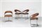 MANIFATTURA ITALIANA Quattro poltroncine in metallo cromato e pelle???, anni...