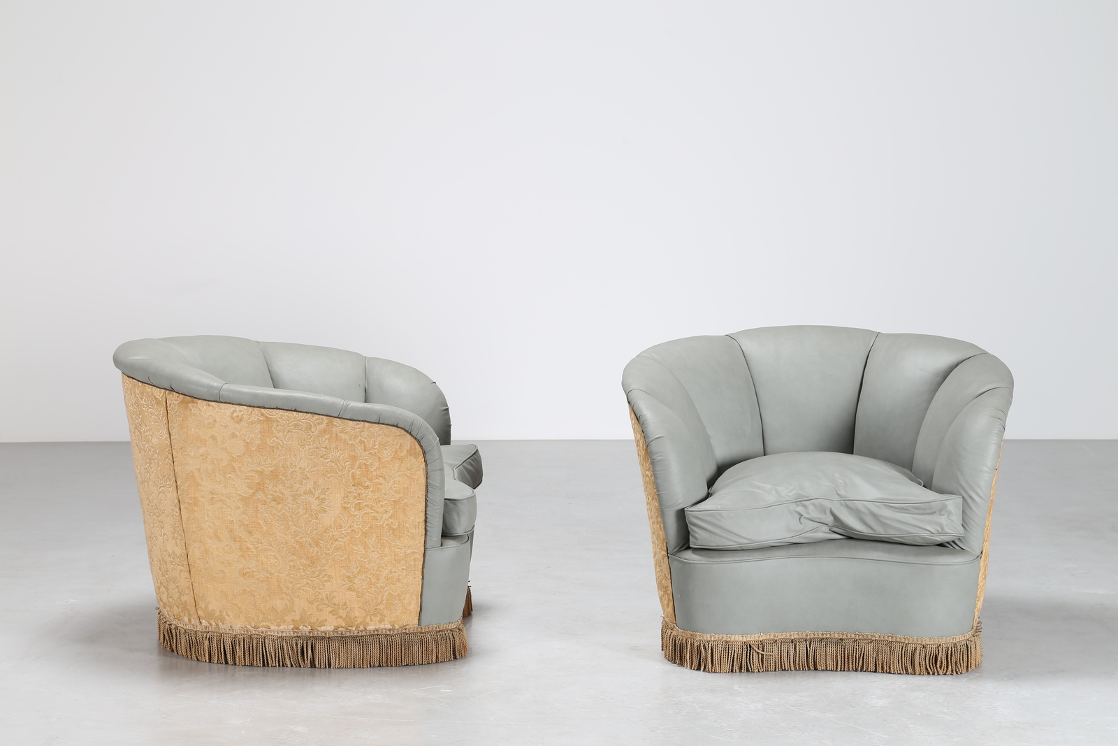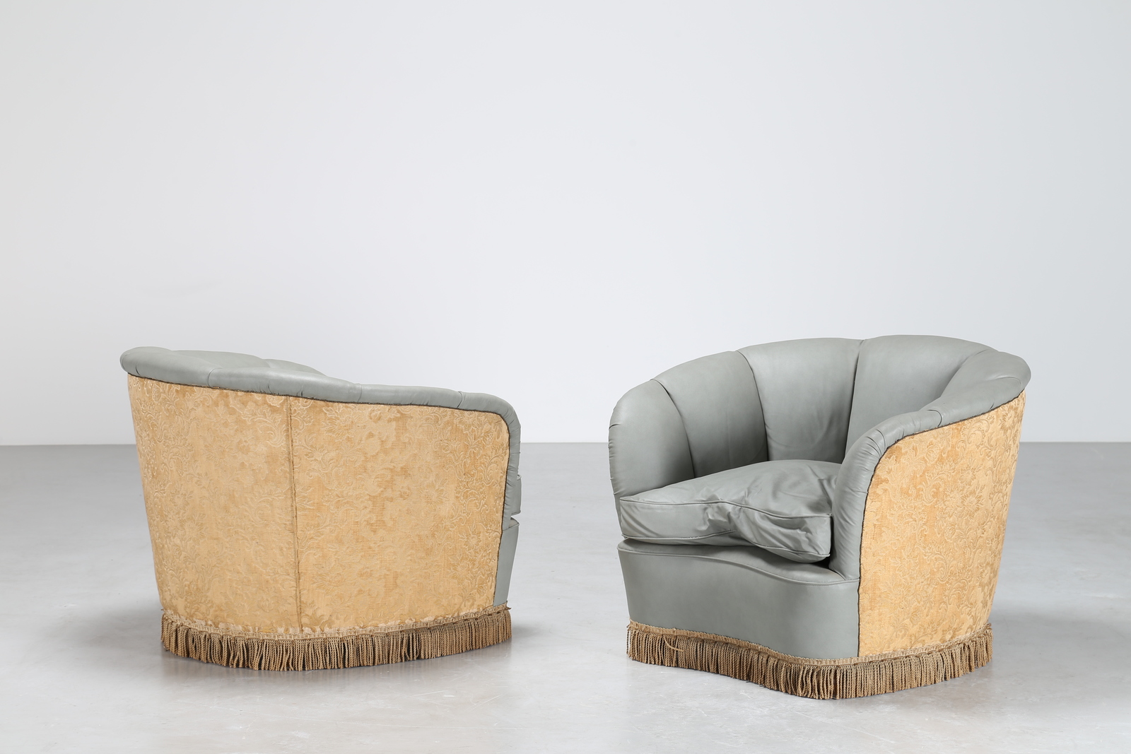 FRATELLI BORGHI Coppia di poltrone in legno e tessuto originale, per Fratelli...