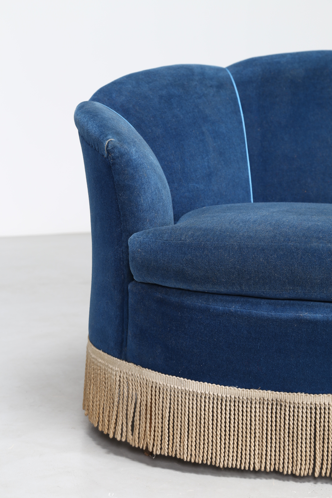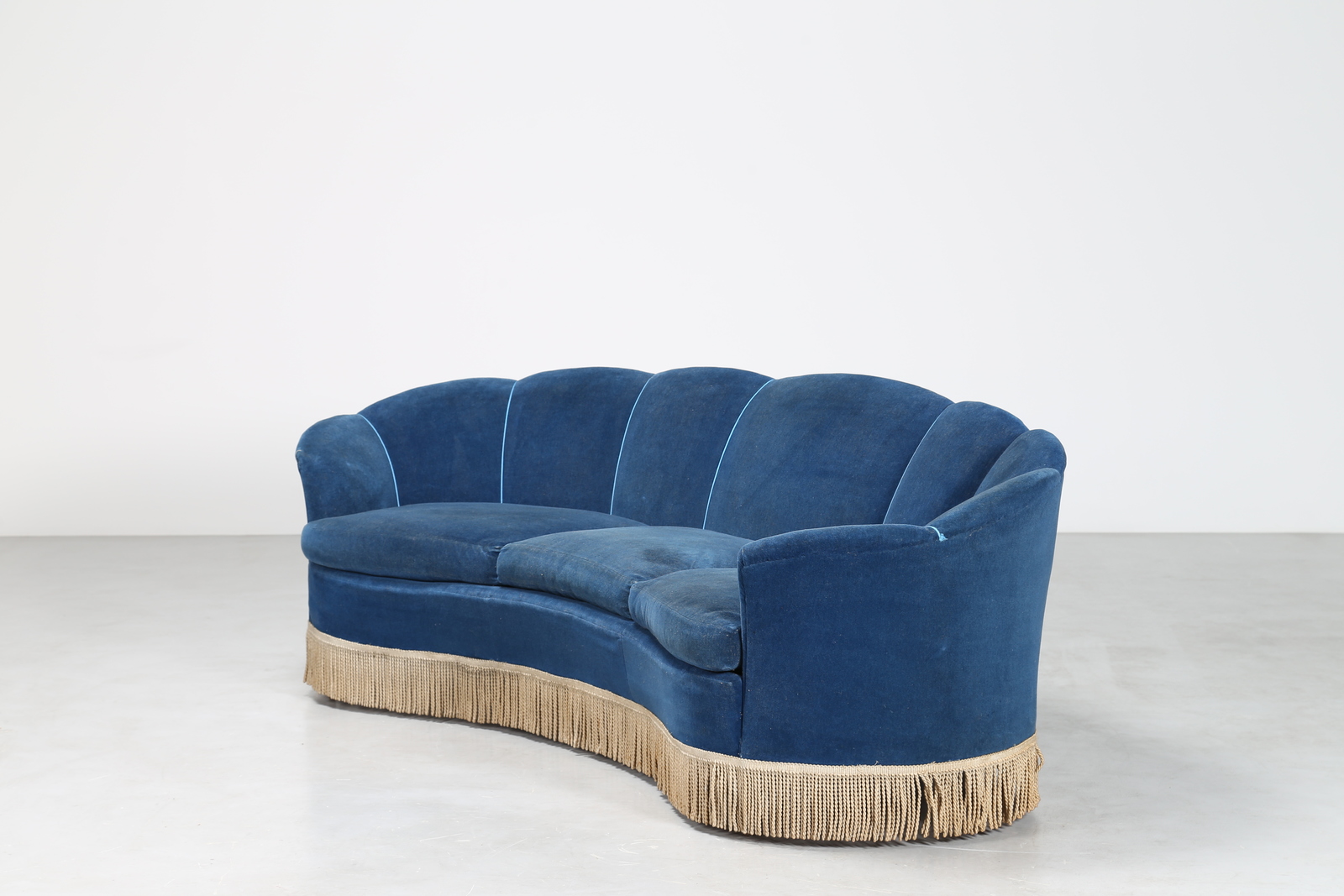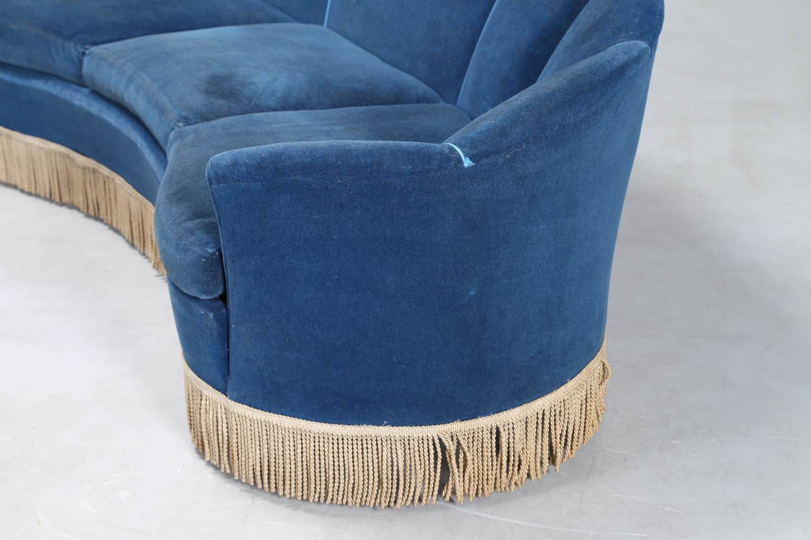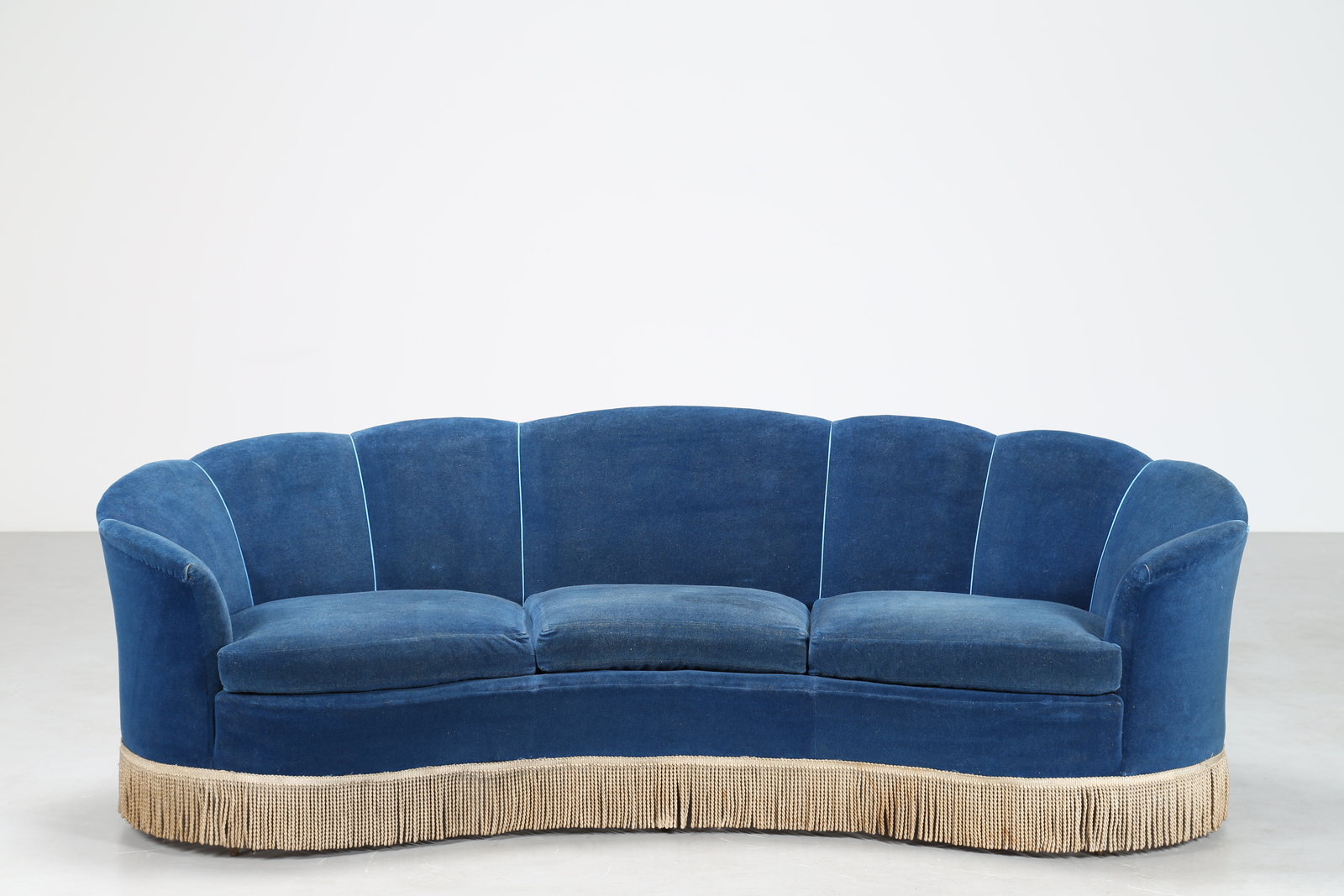 BORSANI OSVALDO (1911 - 1985) Divano in legno e velluto blu, produzione ABV Arredamenti Borsani-Varedo, anni 40 . -. Cm 220,00 x 74,00 x 95,00.