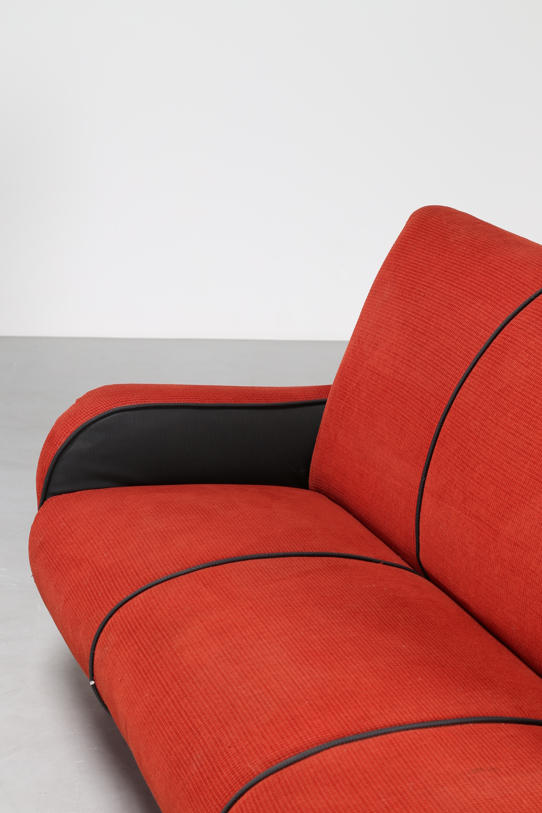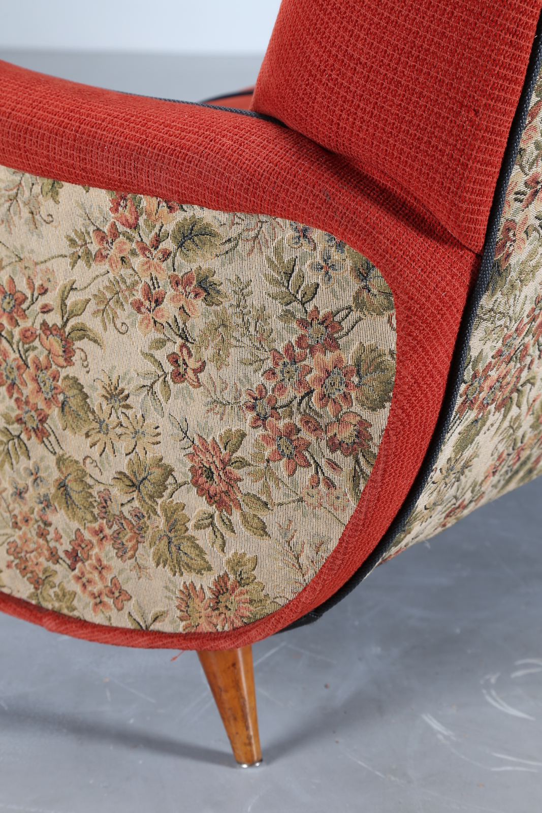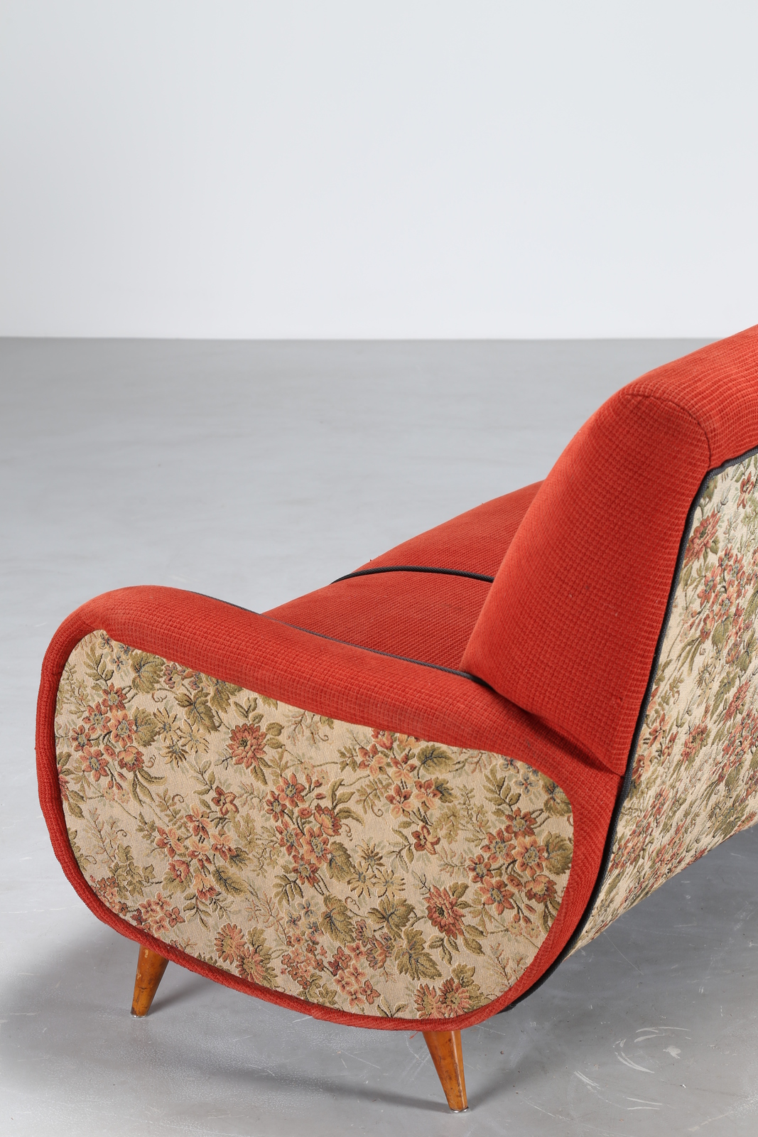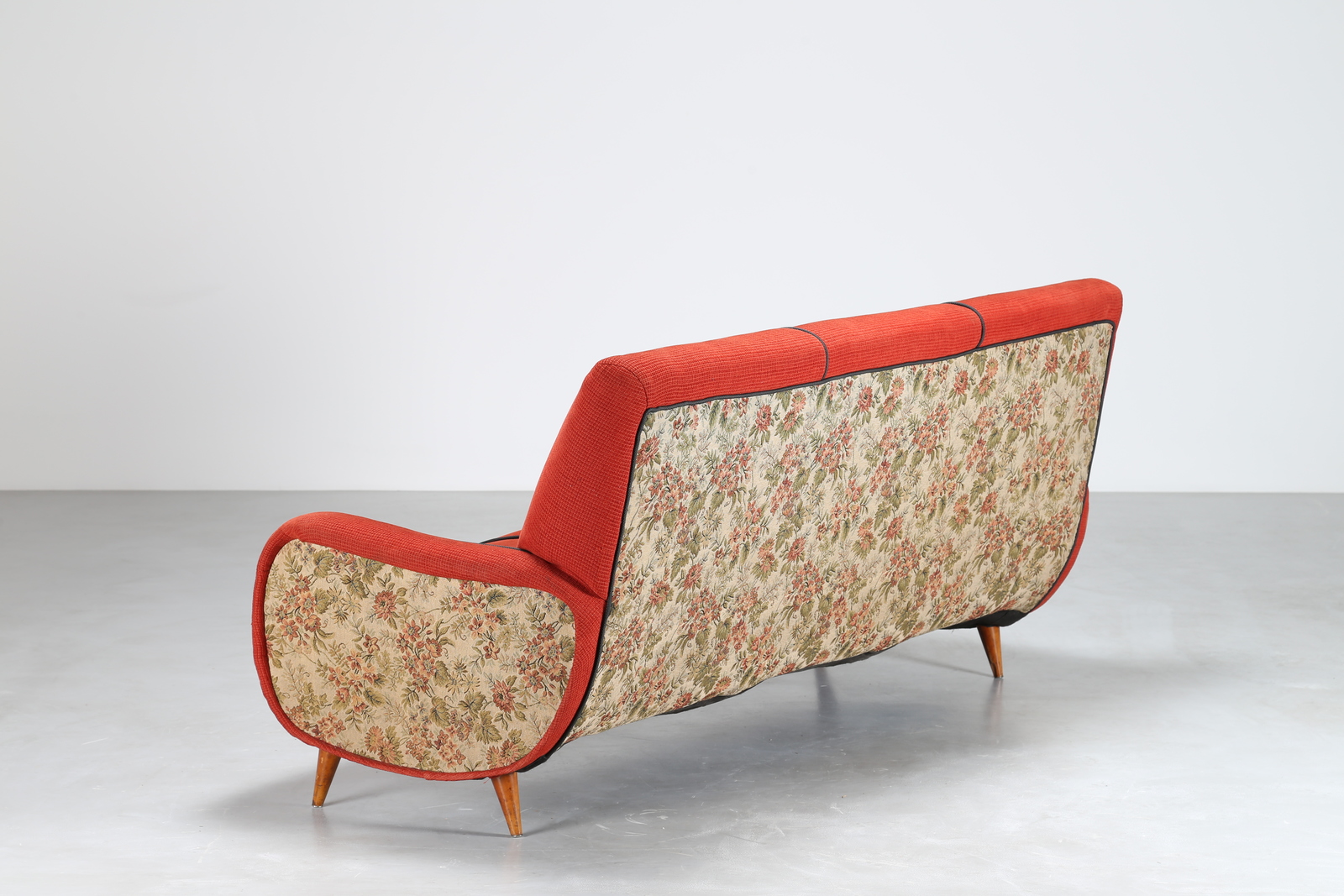 MANIFATTURA ITALIANA Divano in lego e tessuto, anni 50. -. Cm 188,00 x 81,00...