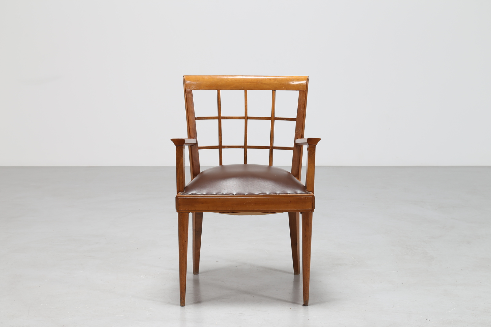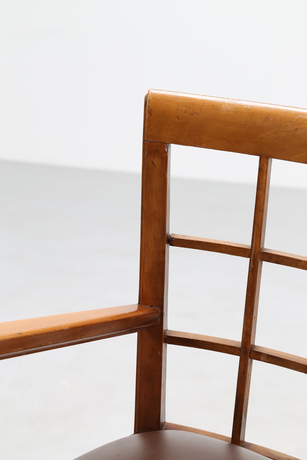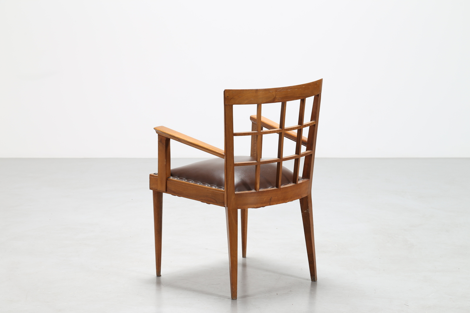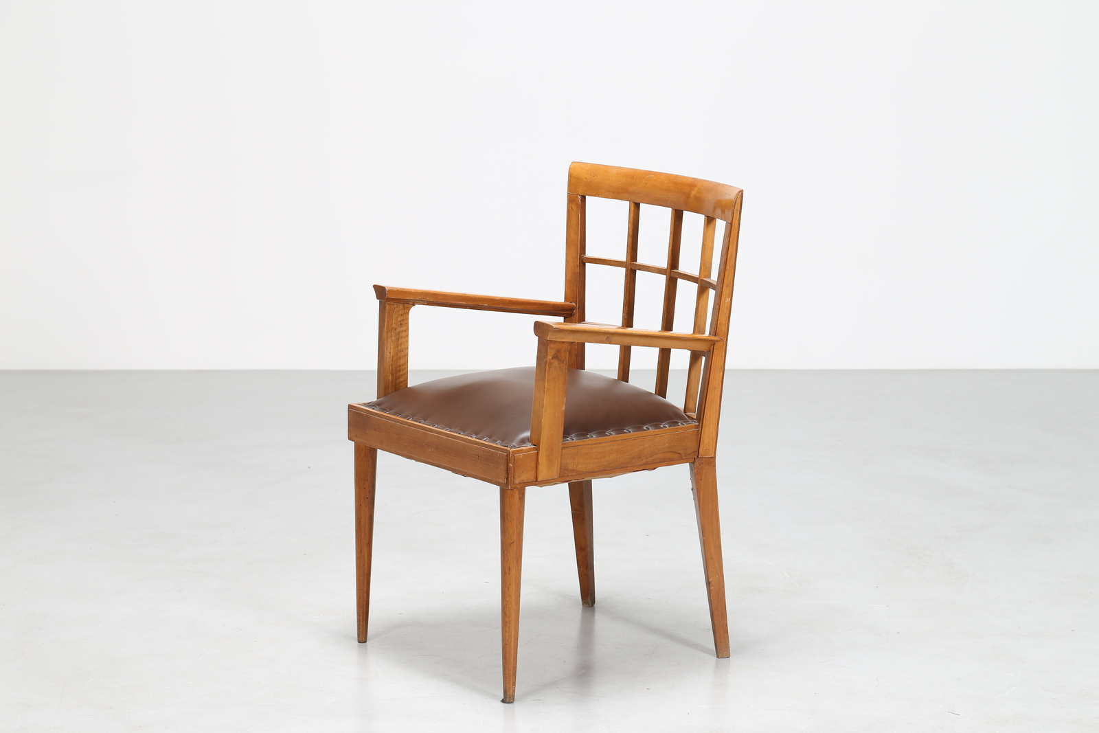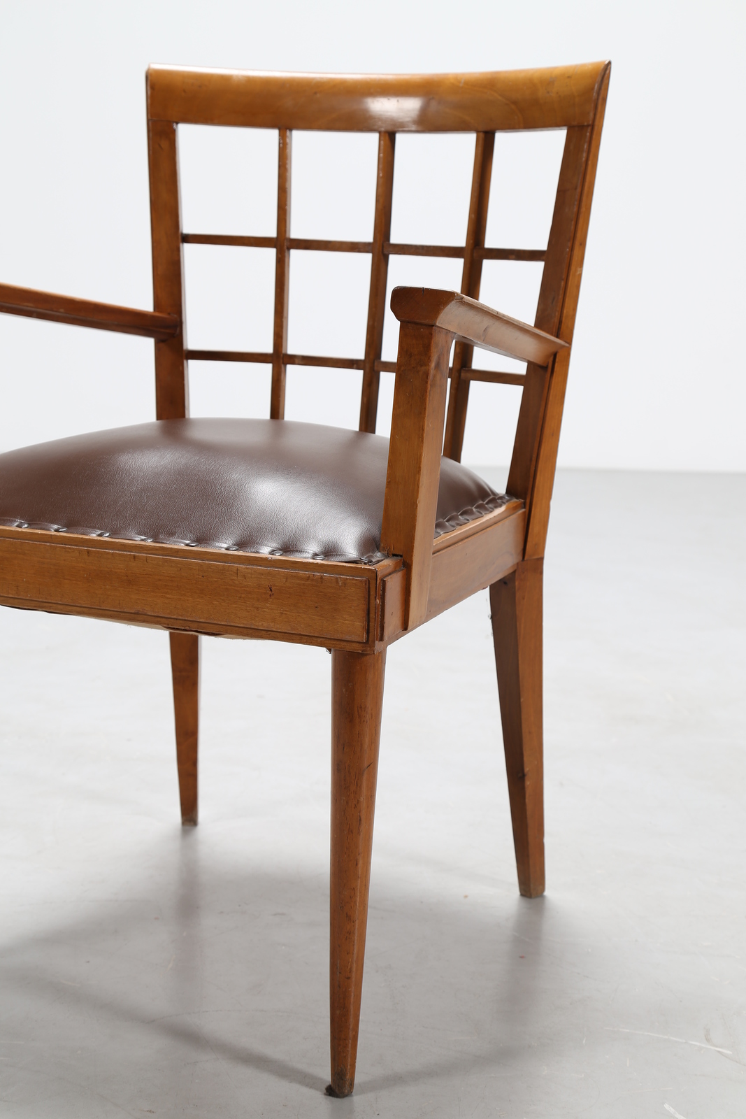 GIO PONTI - EMLIO LANCIA Attrib. Poltroncina in noce con seduta in skai, anni 40. . -. Cm 59,50 x 86,00 x 56,00.