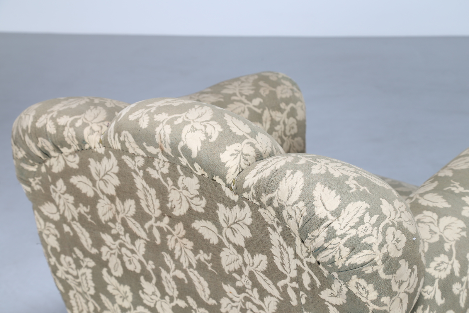 MANIFATTURA ITALIANA Coppia di poltrone in legno e tessuto, anni 50. -. Cm...