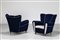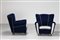 MANIFATTURA ITALIANA Coppia di poltrone con piedini in ottone e tessuto...