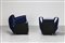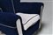MANIFATTURA ITALIANA Coppia di poltrone con piedini in ottone e tessuto bicolere blue bianco anni 50. -. Cm 87,00 x 90,00 x 83,00.