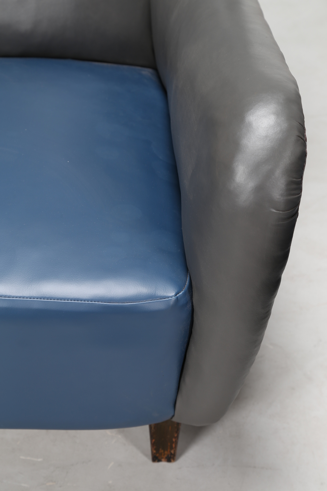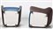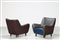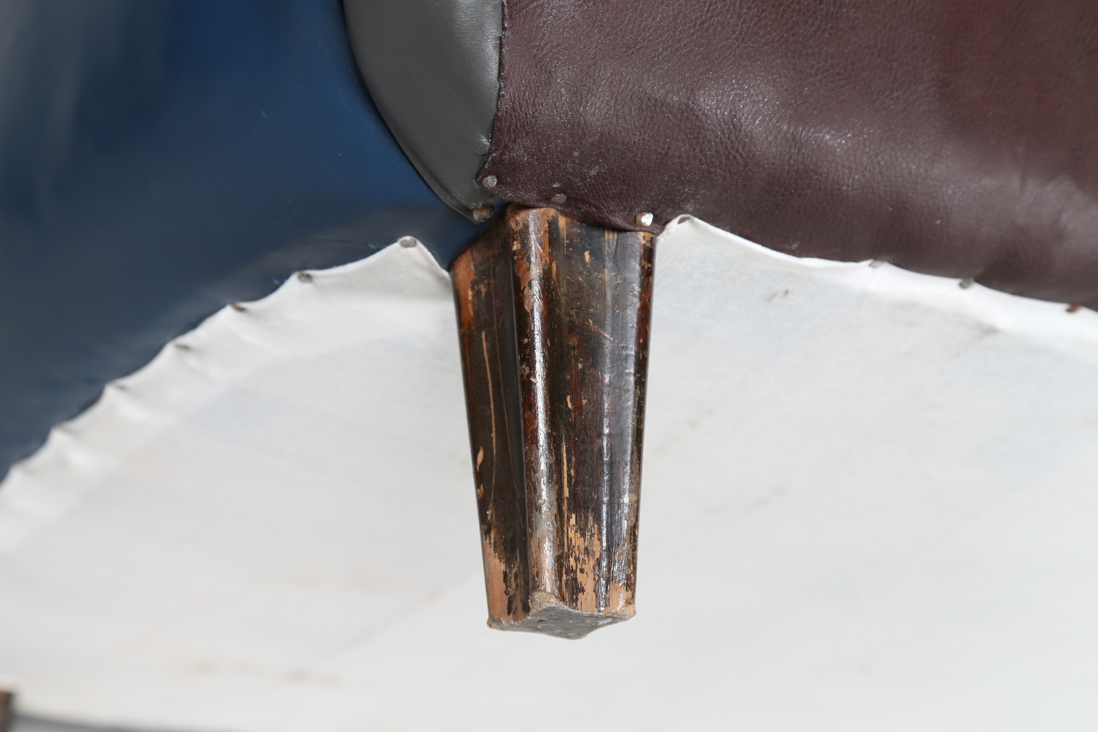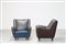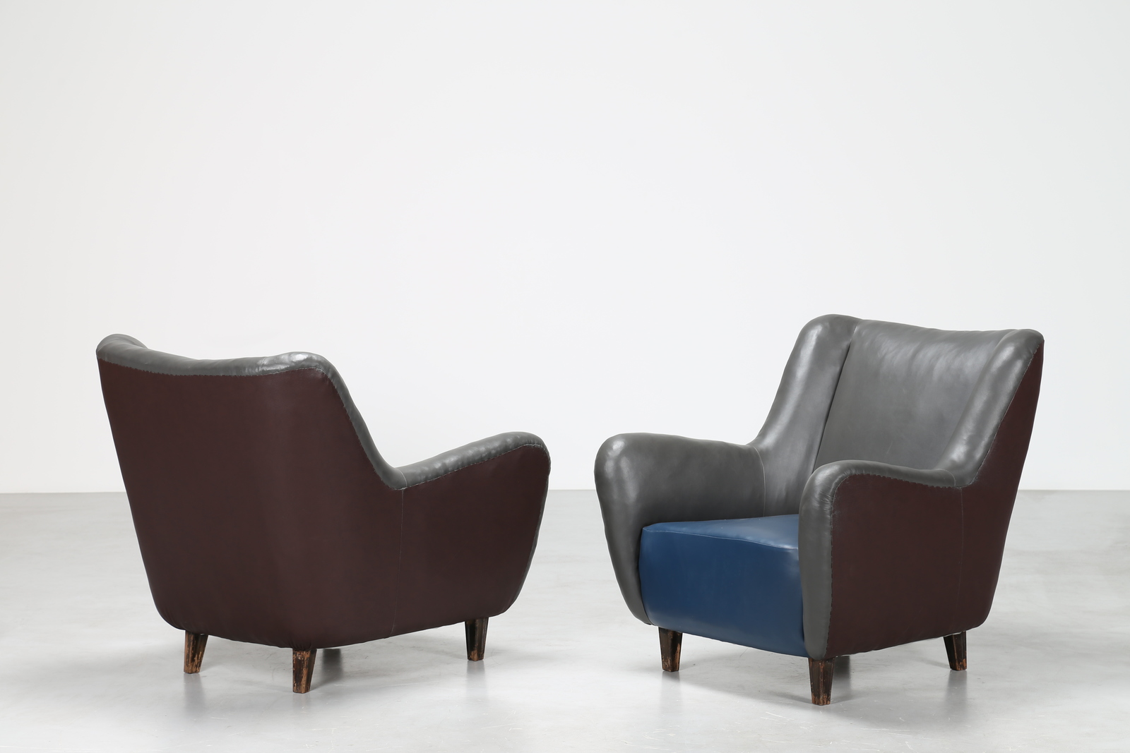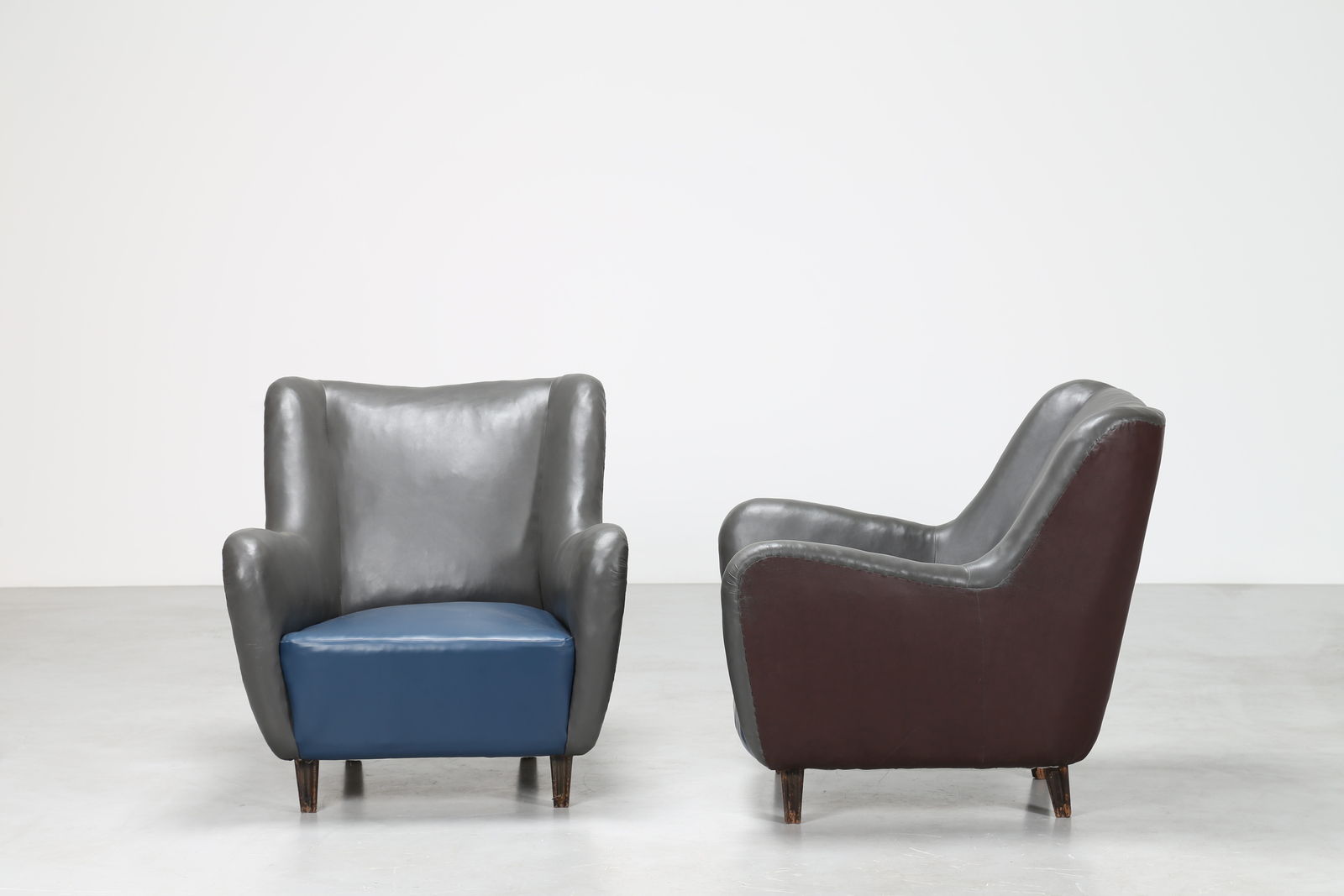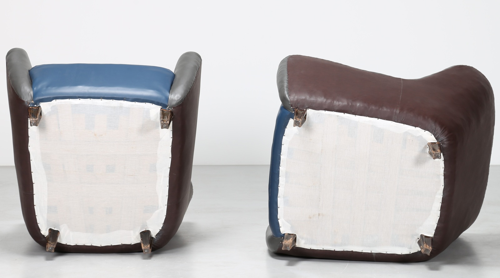 MANIFATTURA ITALIANA Coppia di poltrone imbottite pelle e legno. Legno e...