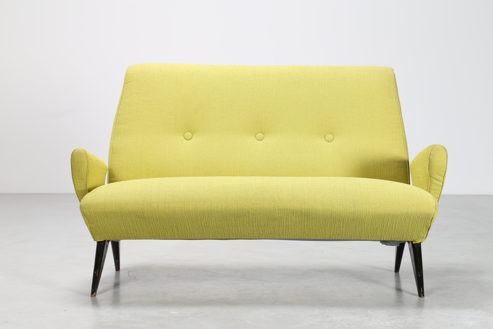 Lot 303 | ZONCADA NINO (1898 - 1988) Divanetto due posti in tessuto e legno laccato...