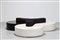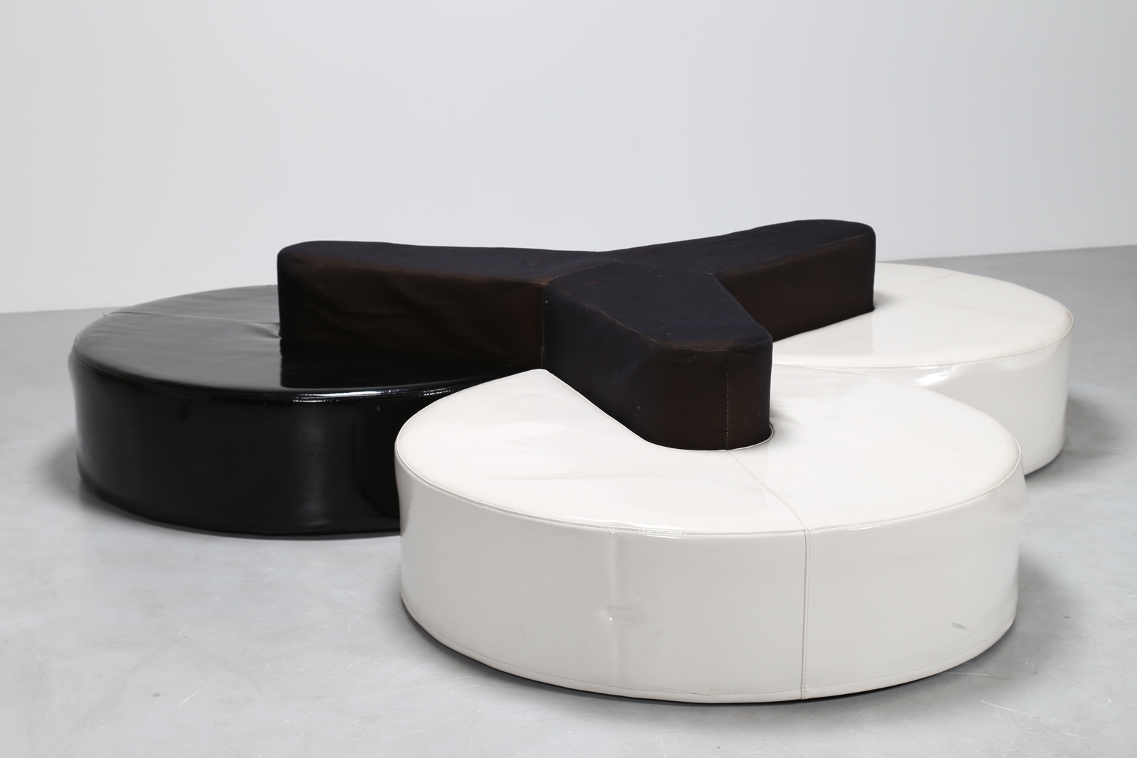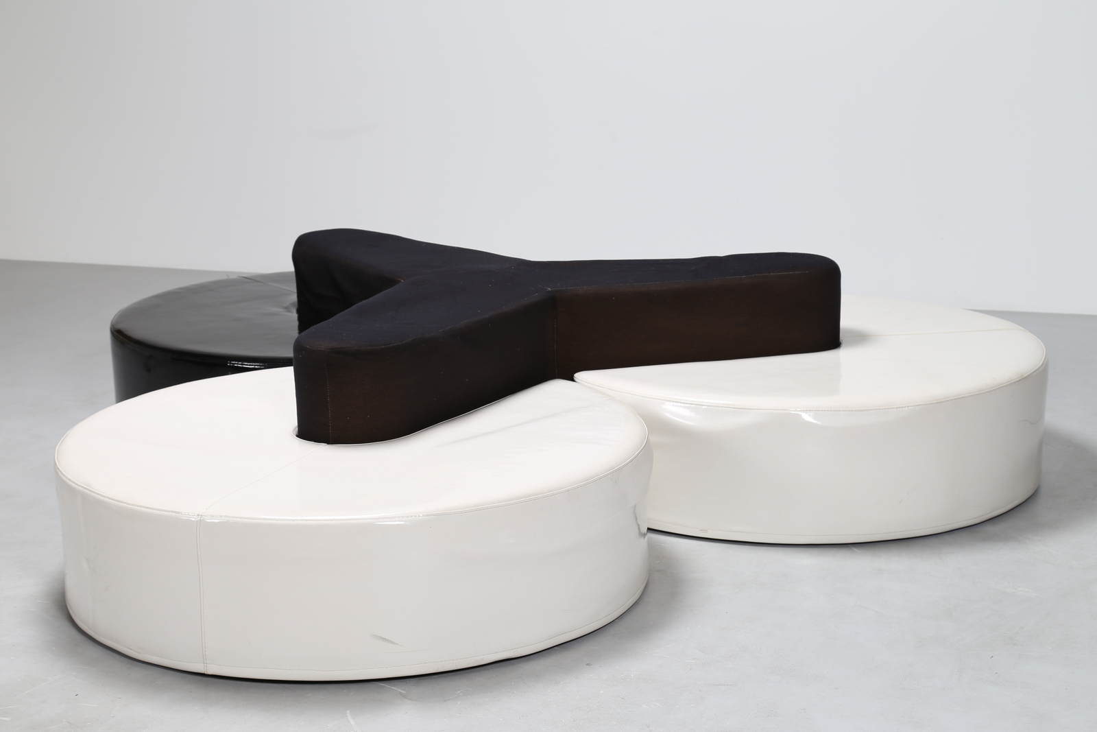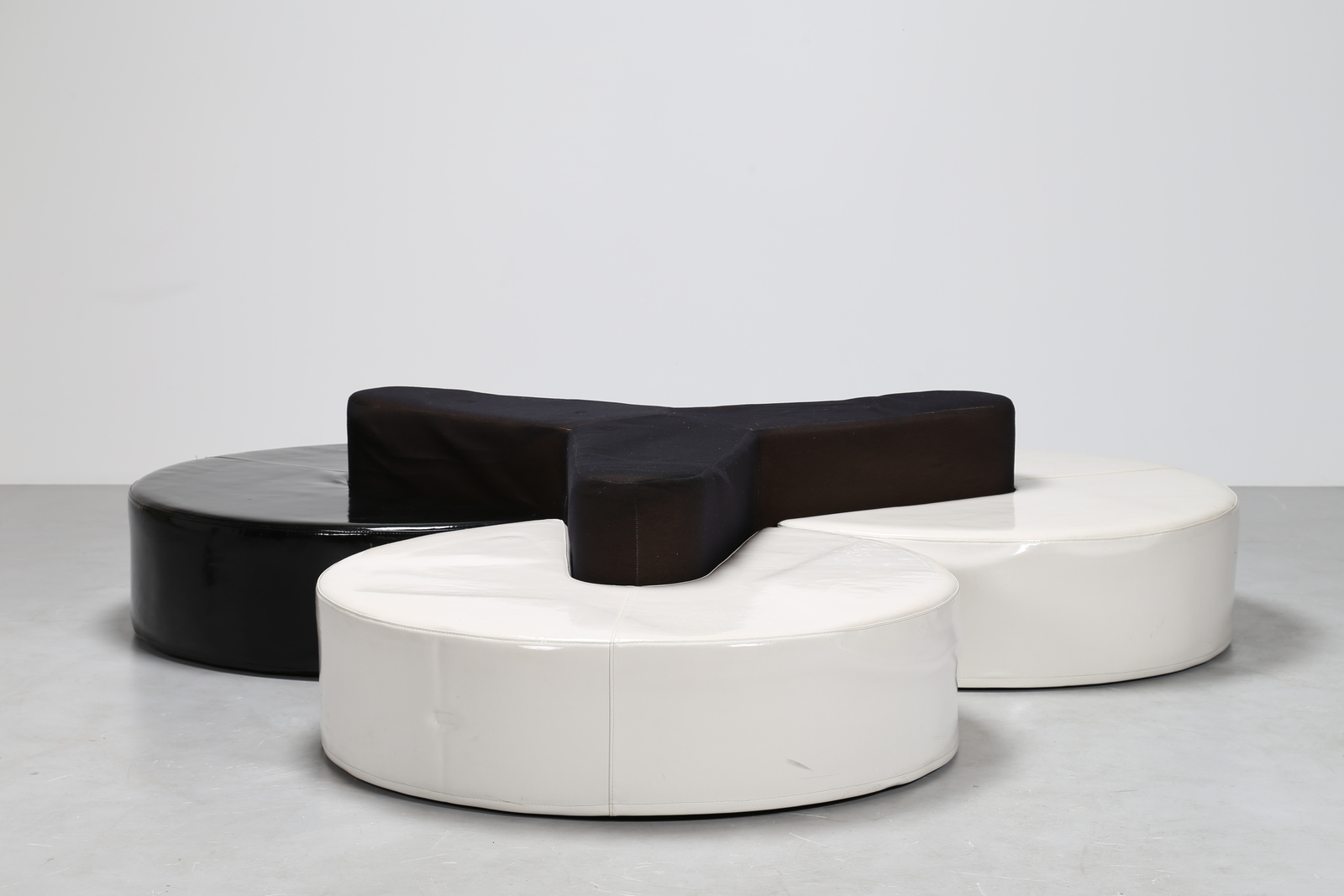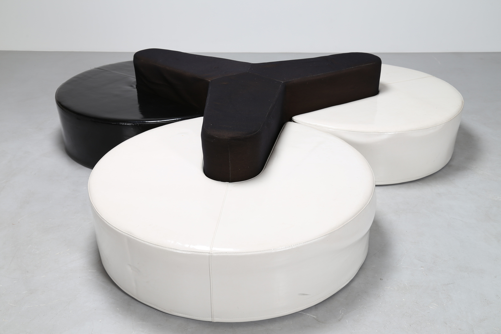 MANIFATTURA ITALIANA Divano da centro in skai e tessuto, anni 70. -. Cm 240,00 x 50,00 x 240,00.