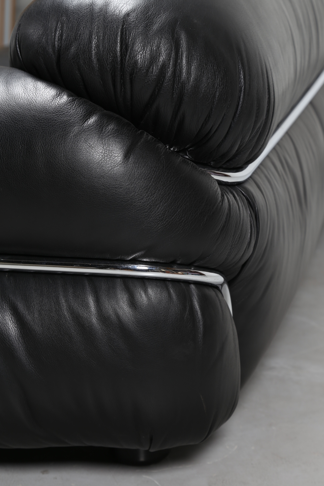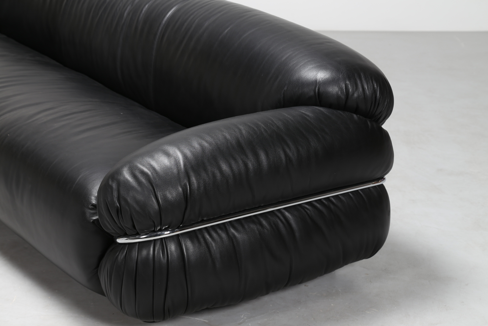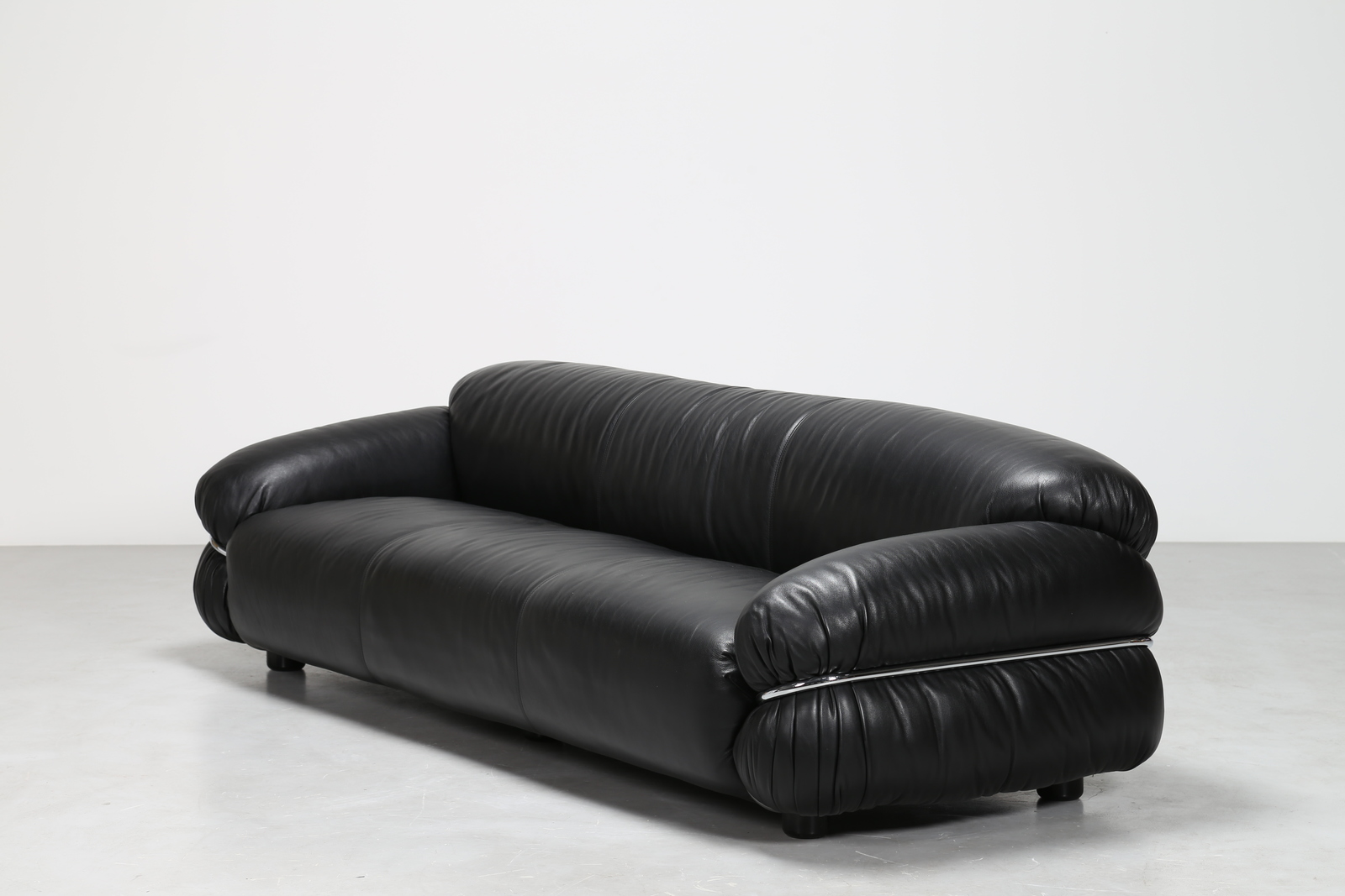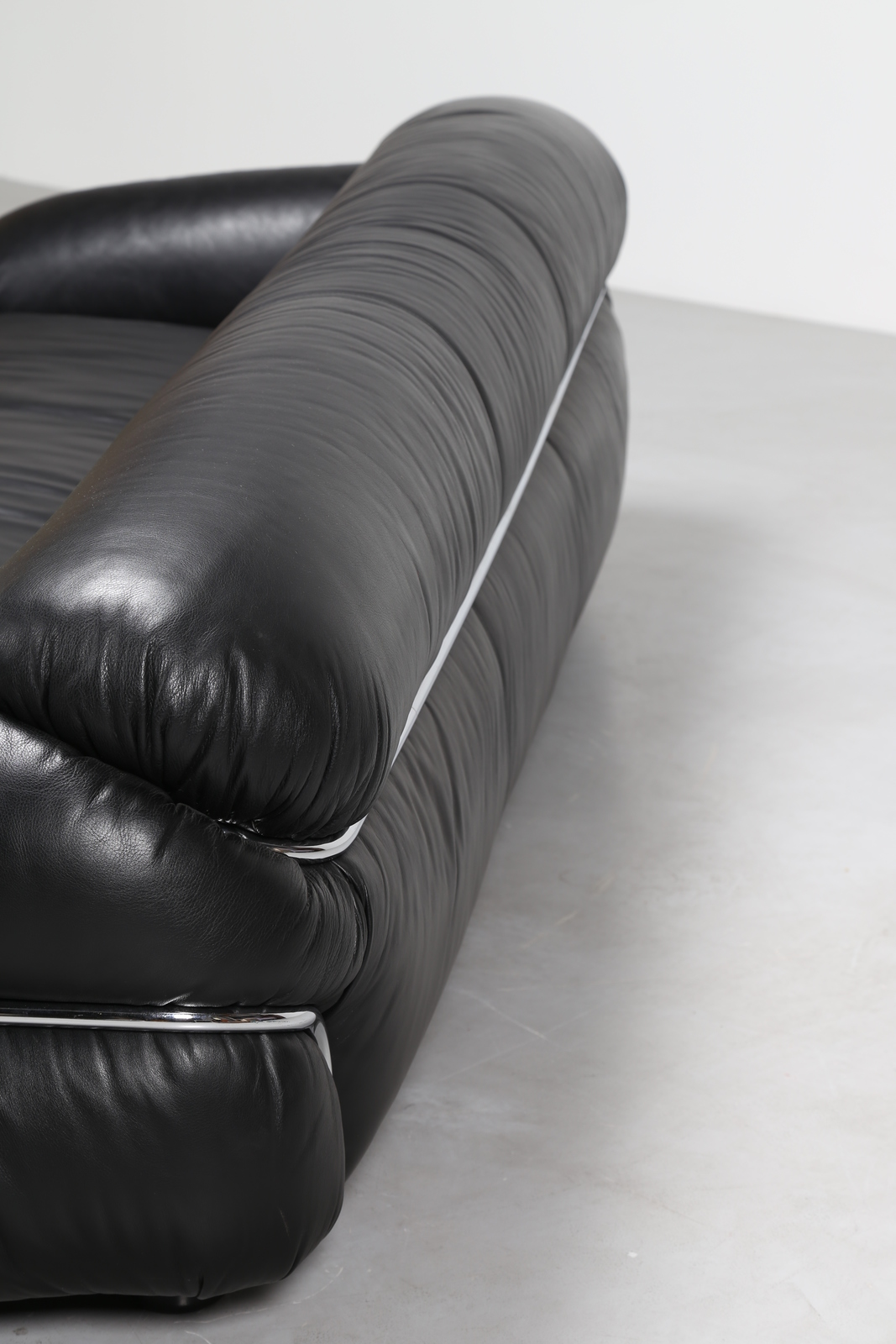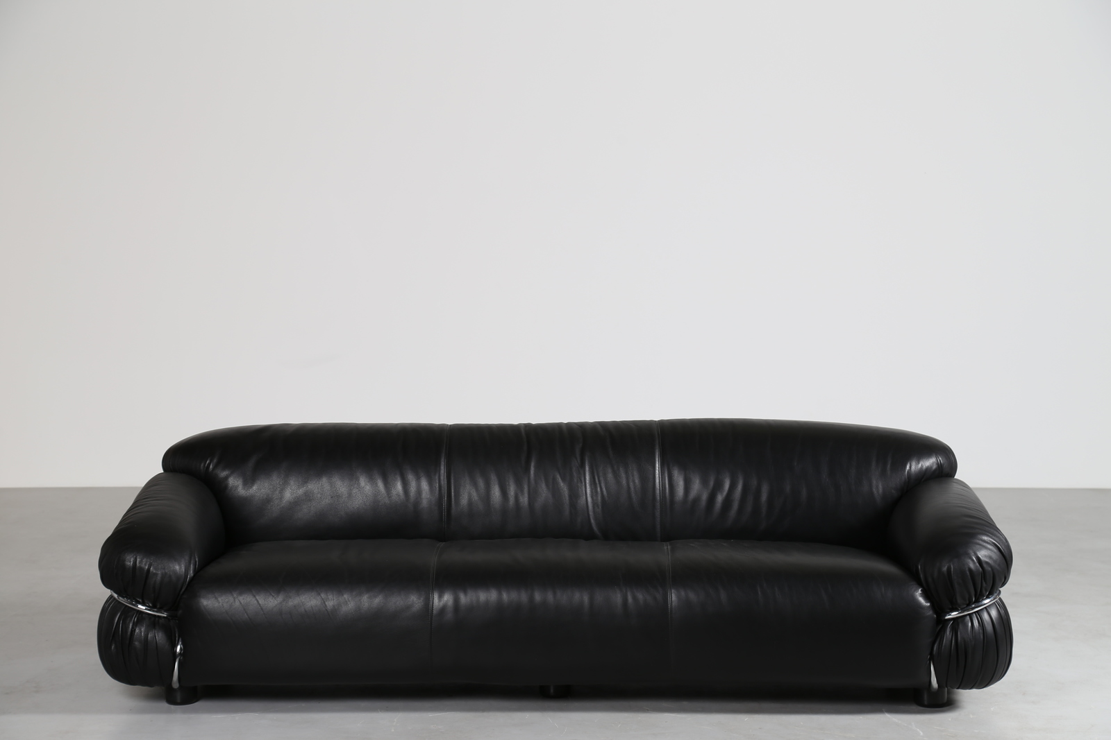 FRATTINI GIANFRANCO (1926 - 2004) Divano in acciaio cromato con rivestimento in pelle, mod. Sesann per CASSINA, anni 70. Pubblicazioni; Ottagono n. 21 giugno 1971, pag. 26; Domus 504 settembre 1971, pubblicità; Repertorio, Giuliana Gramigna 1950-2000, Allemandi, Torino, 2003, pag. 174. . -. Cm 241,00 x 68,00 x 92,00.
