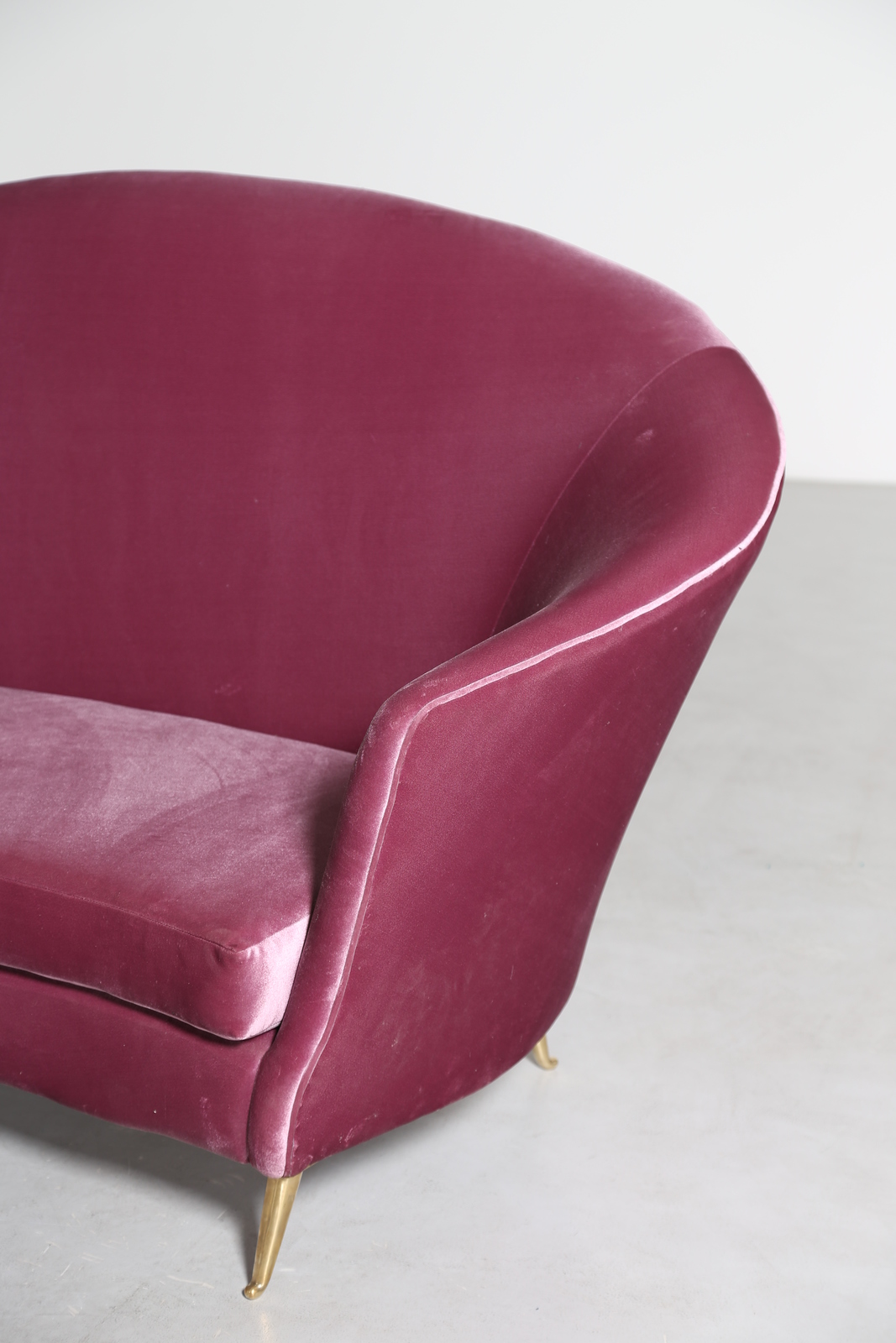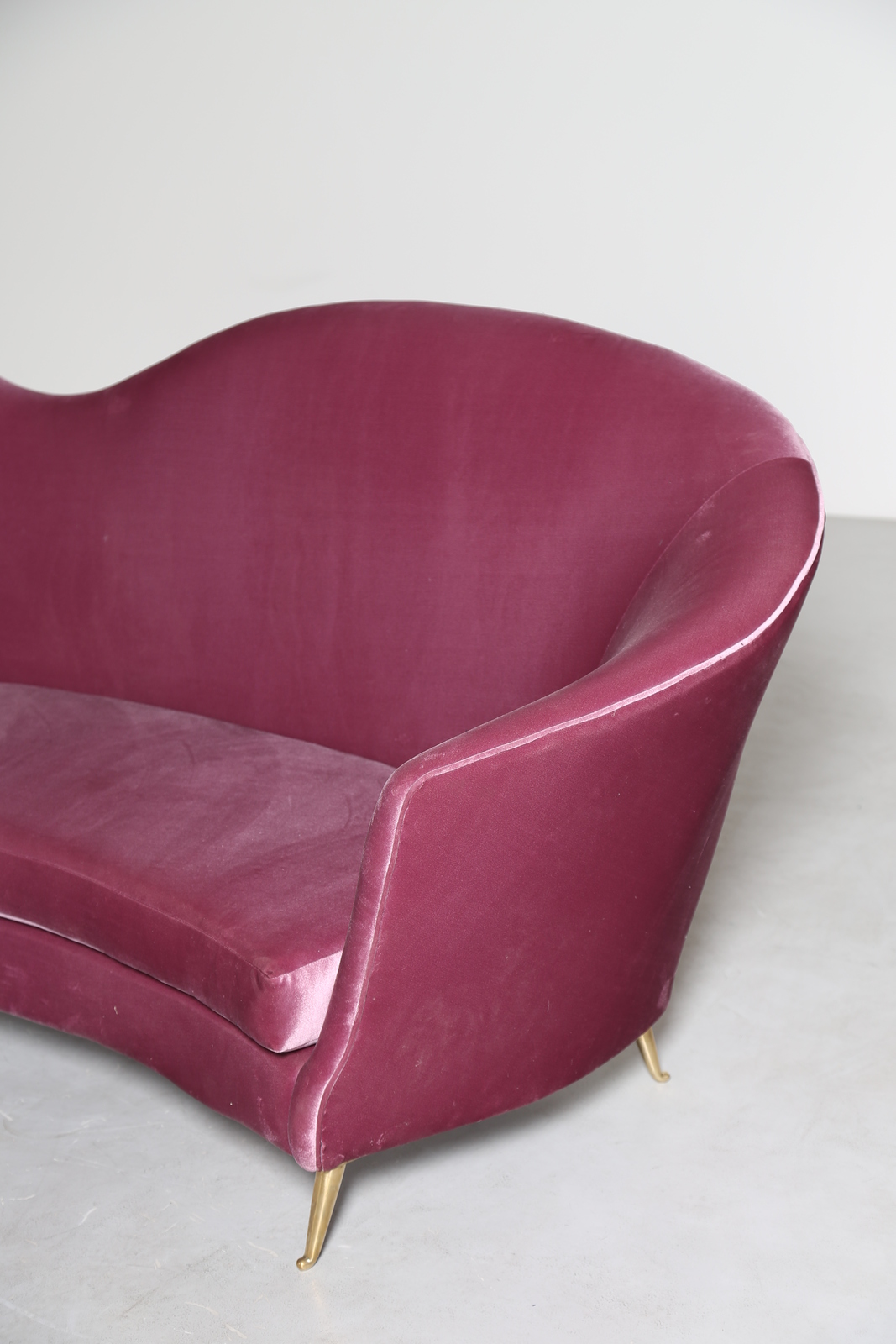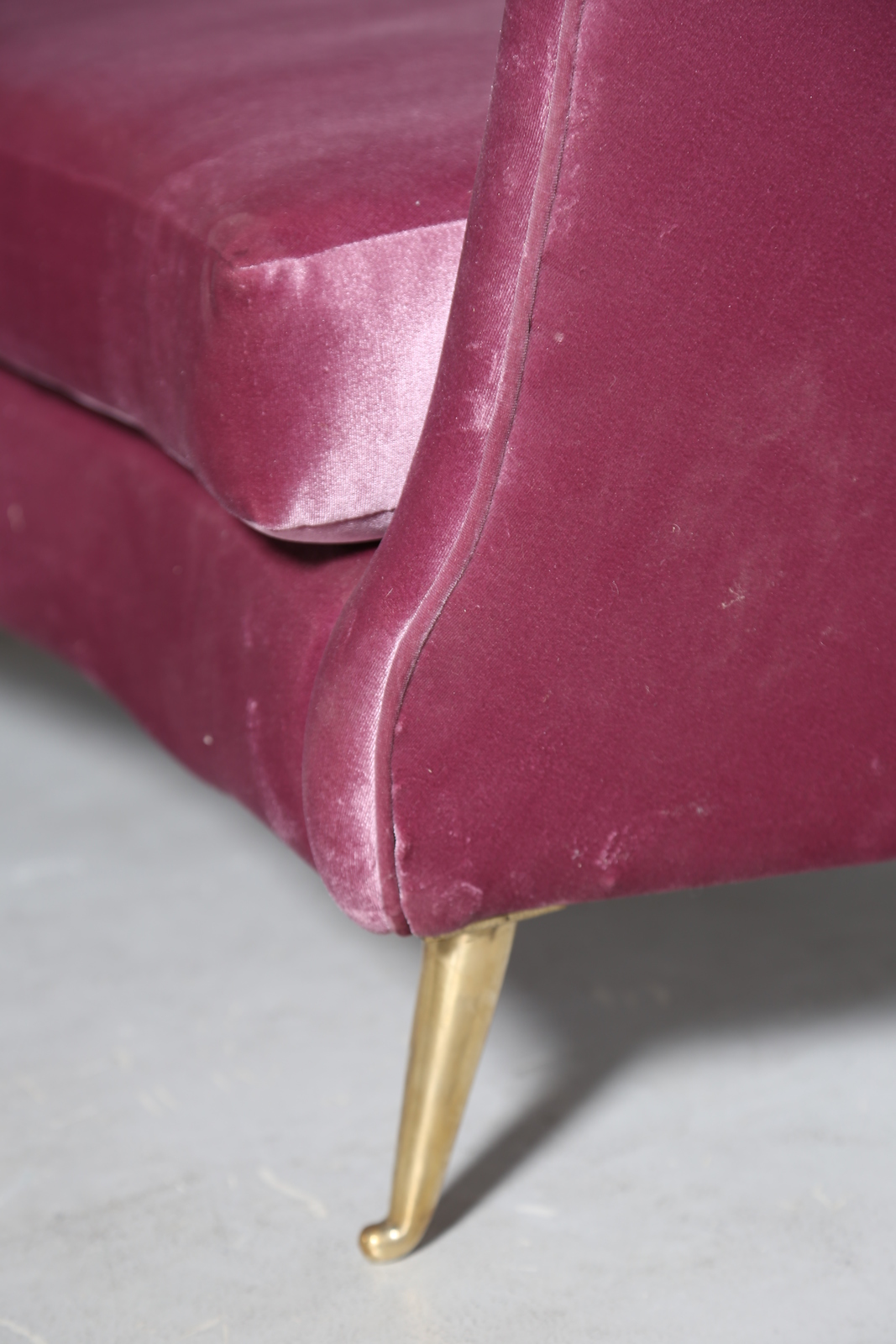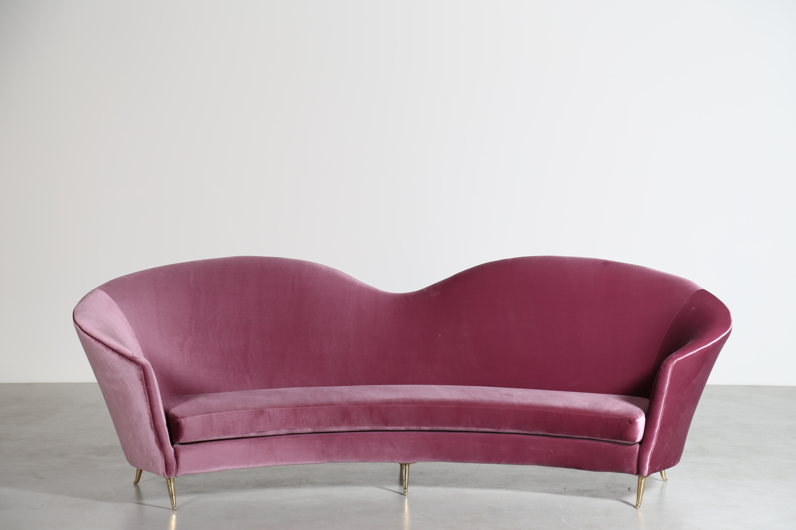 LACCA CESARE Attrib. Divano curvo in tessuto e piedi in ottone, anni 50. -....